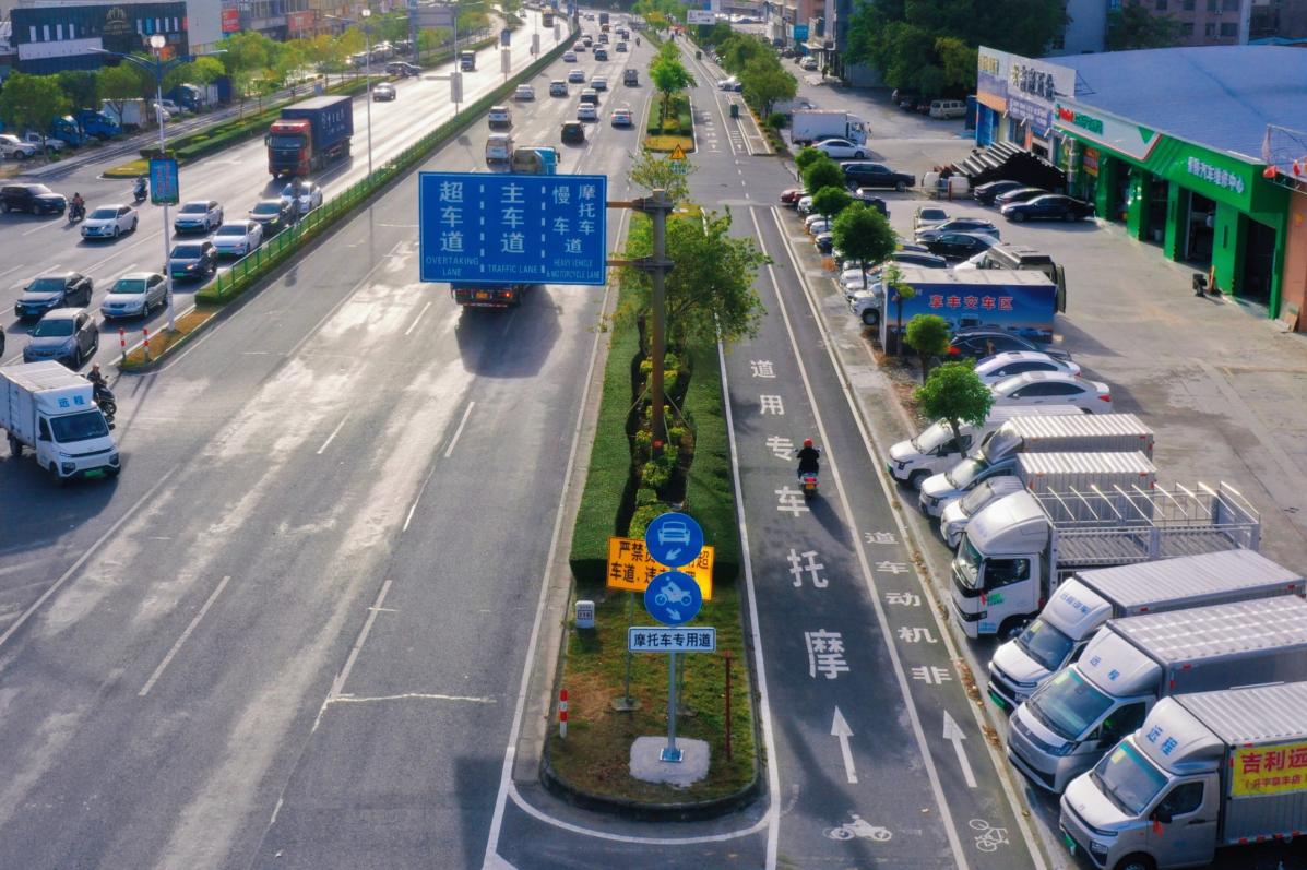 深研細謀,推動調研成果落地見效。江門市開平公路事務中心于2021年10月建成國道325線沙岡至岡中段(K108+000~K112+000)摩托車專用道,為江門市國道上第一條摩托車專用道;2022年9月結合前期成功經驗繼續推廣建成國道325線岡中路口至中業新城段(K112+000~K114+400)摩托車專用道,切實改善了國道325線開平段穿城過鎮路段的交通秩序。2023年就推進國道325線開平段摩托車專用道建設深入沿線村居開展調研,了解到隨著摩托車和非機動車數量出行頻次日益增長,群眾對“增設非機動車道”“提高非機動車道的連續性”,提高摩托車、非機動車出行舒適度、安全性有著日益迫切的訴求。