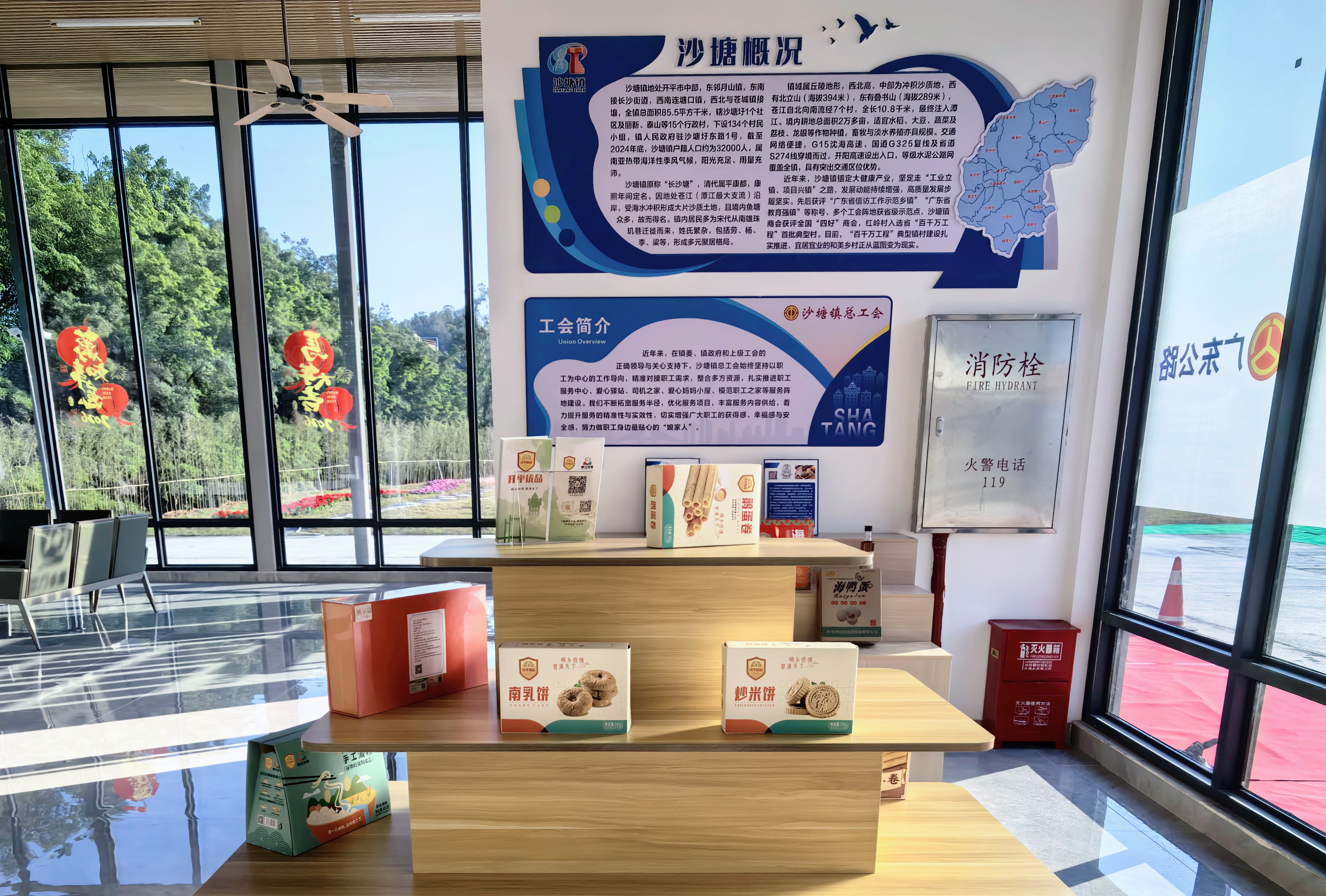 “開平優品”展示銷售區及沙塘鎮宣傳展區內文旅資源介紹圖文并茂,開平優品、馬岡鵝、大沙茶、金雞番薯等名優特產琳瑯滿目,有效拓寬農產品銷售渠道,為鄉村振興注入新的活力。