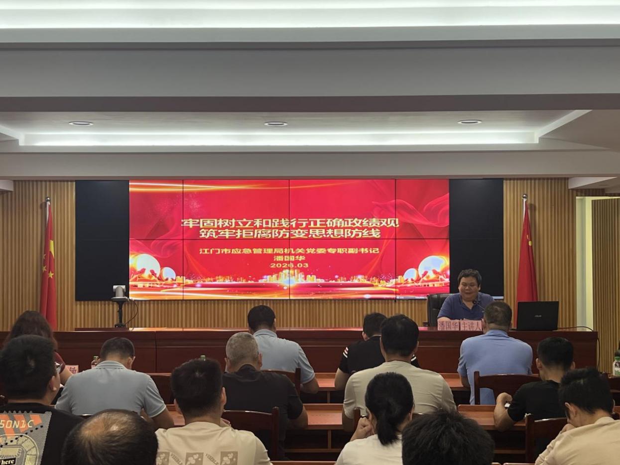 專題黨課上,潘國(guó)華書記緊扣樹立和踐行正確政績(jī)觀這一主題,結(jié)合應(yīng)急管理工作職能特點(diǎn),深刻闡釋了正確政績(jī)觀的核心要義、價(jià)值取向、實(shí)踐要求,引導(dǎo)全體干部職工牢記初心使命,堅(jiān)持人民至上、生命至上的理念,摒棄急功近利、虛名浮利的錯(cuò)誤思想,立足應(yīng)急管理本職,真抓實(shí)干、擔(dān)當(dāng)盡責(zé),以過(guò)硬作風(fēng)扛起防范化解重大安全風(fēng)險(xiǎn)的政治責(zé)任。