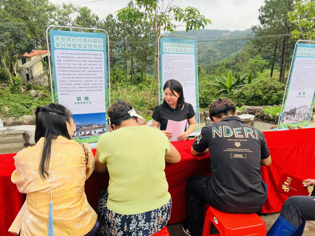 目前大沙茶以綠茶、紅茶、黃茶為主,制作工藝傳承古法并結合現代技術。如今大沙鎮全域茶葉種植面積達3.5萬畝,是全國“一村一品”示范村鎮,也是粵港澳大灣區著名的有機茶產業基地,是開平市茶葉種植面積最大、品牌數量最多、產業發展最為突出的鄉鎮。眼下正值春茶采摘加工的黃金時期,為進一步做強茶產業、做優茶技能、做實茶就業,活動采用“專家智庫+田間課堂+賽場選才+推薦就業”的全鏈條模式,將“人才鏈” 嵌入“產業鏈”,探索以技能驅動茶產業高質量發展、助力縣域經濟壯大的新路徑。