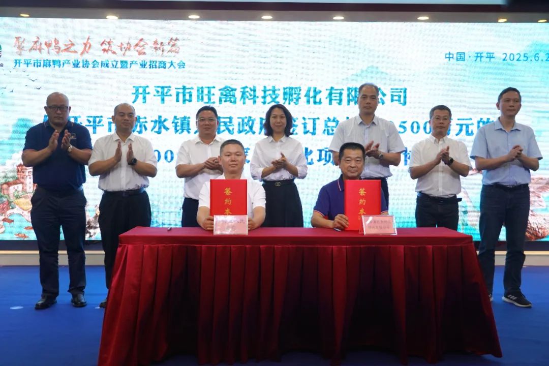 6月20日,開(kāi)平市麻鴨產(chǎn)業(yè)協(xié)會(huì)成立暨產(chǎn)業(yè)招商大會(huì)在開(kāi)平潭江半島酒店舉辦,標(biāo)志著開(kāi)平麻鴨養(yǎng)殖業(yè)從分散經(jīng)營(yíng)邁向集約化、標(biāo)準(zhǔn)化發(fā)展新階段,為打造地方特色農(nóng)產(chǎn)品品牌、促進(jìn)農(nóng)民增收、推動(dòng)鄉(xiāng)村振興注入新動(dòng)能。浙江省縉云縣人大常委會(huì)黨組書(shū)記、主任趙建銘,開(kāi)平市領(lǐng)導(dǎo)周寶珠、馮健楚參加活動(dòng)。