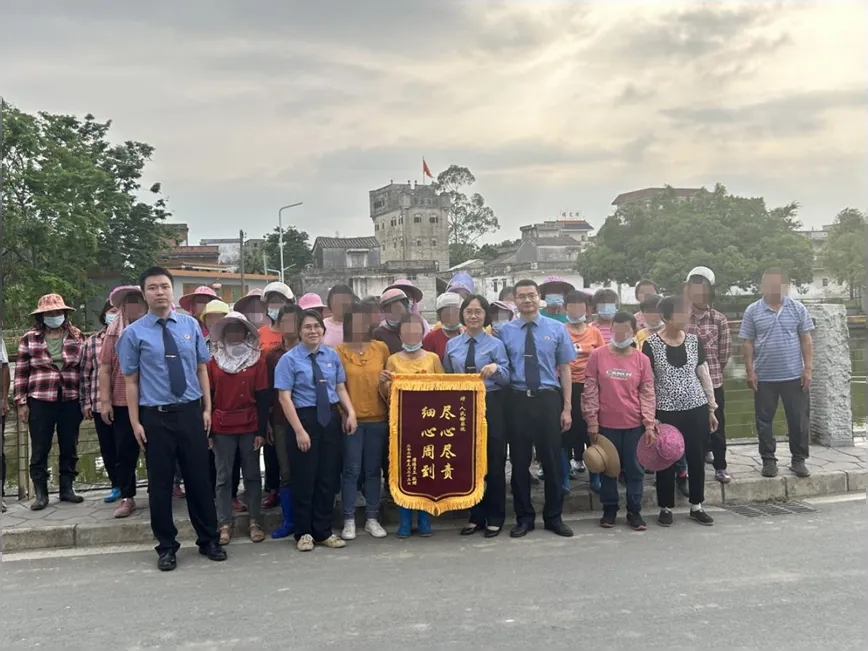 戚某嬋等49人追索勞動報酬糾紛支持起訴案的當(dāng)事人為市人民檢察院送上錦旗