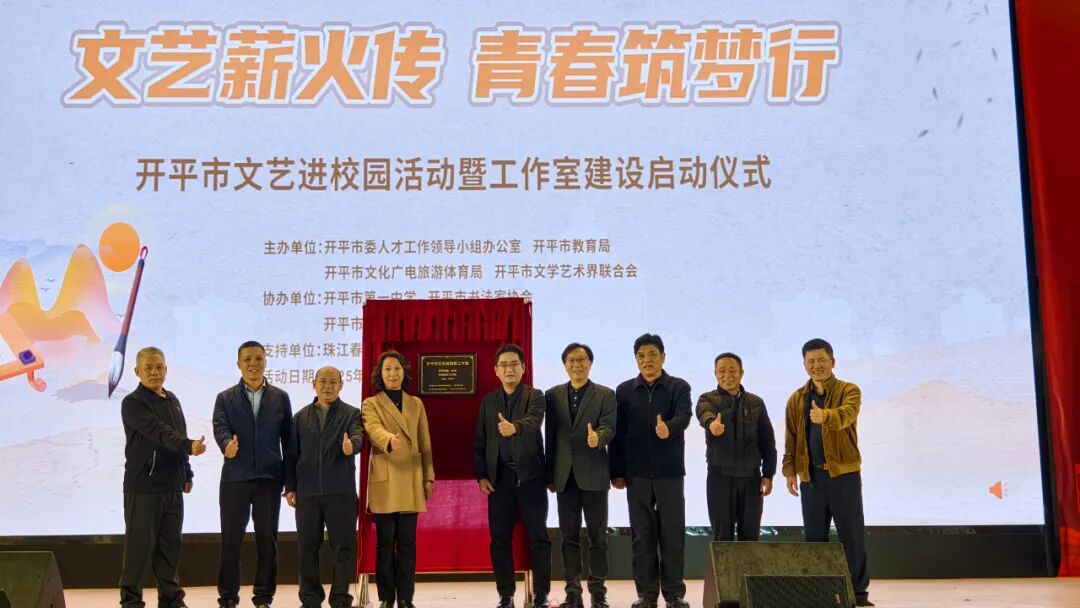 本次活動由開平市委人才工作領導小組辦公室、市教育局、市文廣旅體局、市文聯聯合主辦。首批將在開平一中、開僑中學、蒼江中學、達德小學等6所學校,組建7個文藝進校園工作室。11月20日開平市第一中學詩詞教學工作室與開平市第一中學美術教學工作室在啟動儀式上率先揭牌;21日,開平市開僑中學書法教學工作室揭牌。