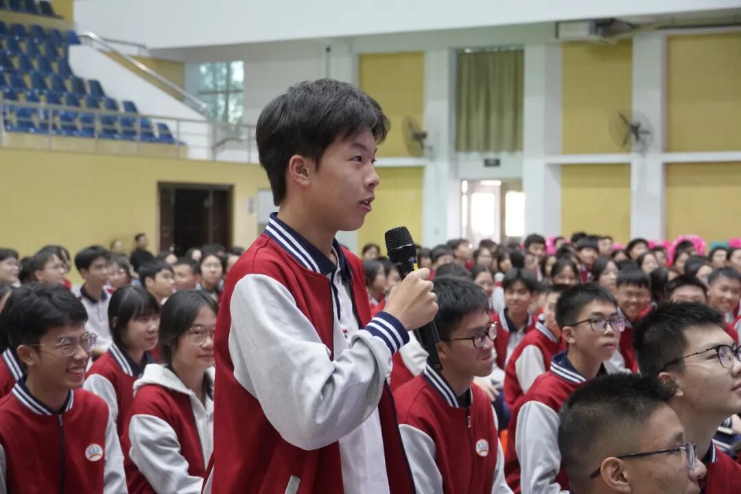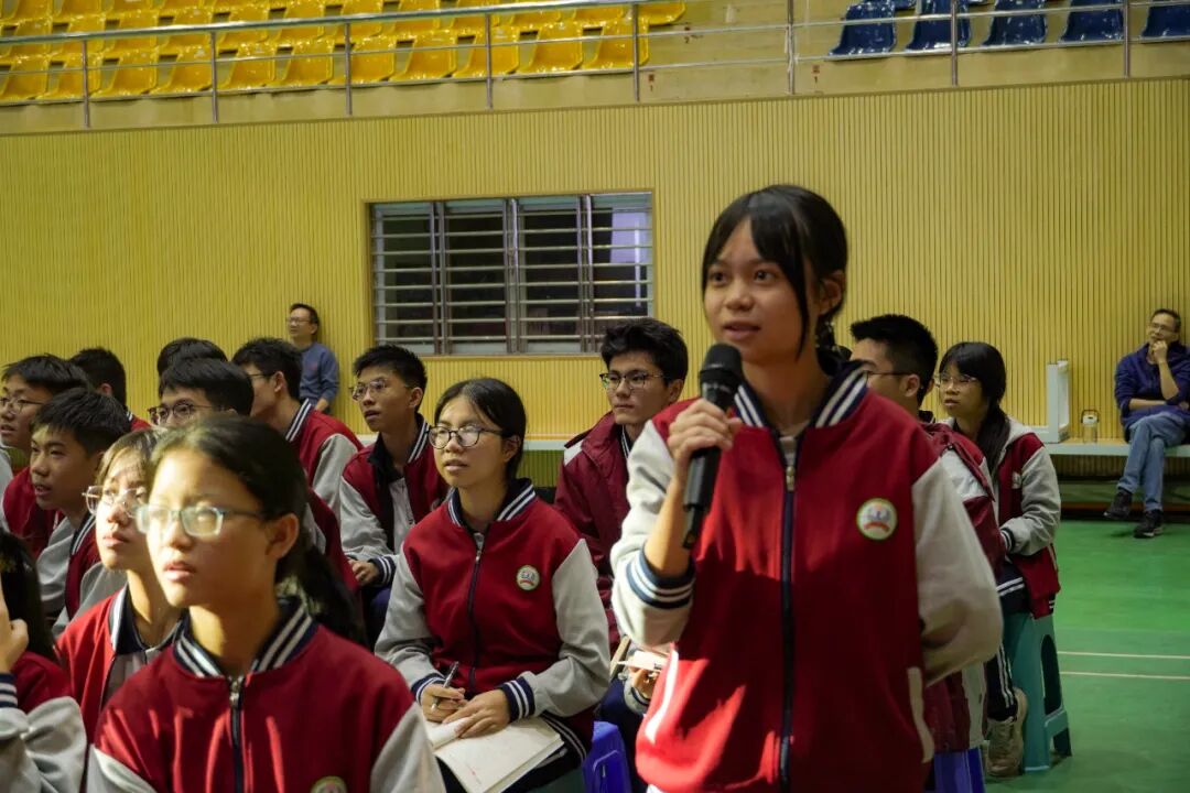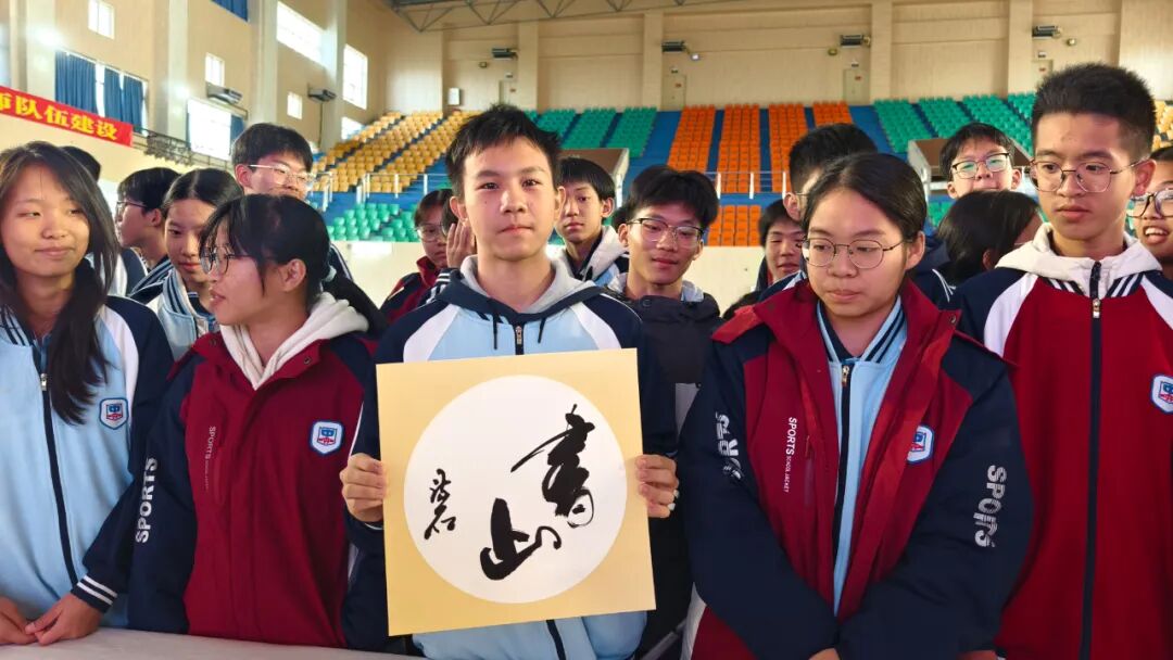 活動現場,開平市第一中學詩詞教學工作室負責人饒秋龍以紀念司徒美堂先生的對聯作品為實例,細致講解對聯基礎知識與格律要求,還分享了自己的原創對聯作品,為學生帶來一堂與華僑文化緊密相關的對聯教學課;開平市開僑中學書法教學工作室負責人陳旭日則列舉篆書、隸書、楷書、行書、草書等五種書體,向同學講述中國書法的起源和演變歷史。課間還通過趣味搶答送書法禮物等游戲,加固學生對中國傳統書法知識的印象,激發了學生對中國傳統文化的學習興趣,更讓大家樹立了傳承信心,為開平市“文藝薪火傳、青春筑夢行”文藝進校園工作室建設打響“頭炮”。
