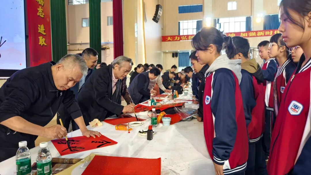 課堂結束后,開平市書法家協會、美術家協會等專業老師現場揮毫,為學生們呈現了一場“水墨交融”的藝術盛宴。學生們紛紛圍在老師身旁,近距離觀摩墨寶創作過程,感受傳統藝術的獨特魅力。