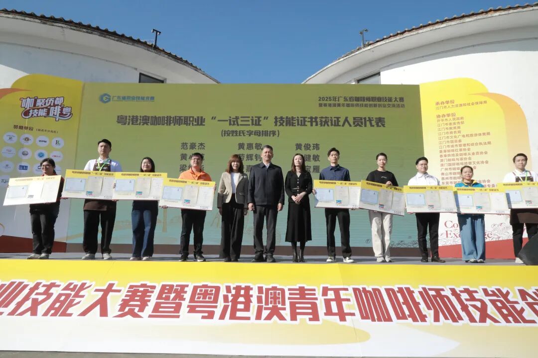 開幕儀式上,來自江門市恒利兄弟咖啡商貿有限公司的培訓導師潘寶雁上臺領取了粵港澳咖啡師職業“一試三證”技能證書。“證書不僅是官方對我專業能力的認可,更拓寬了我的職業發展空間。”潘寶雁如今不僅能在內地從業,還可前往港澳地區工作:“有了三地通用的‘通行證’,與港澳同行交流比賽、分享行業經驗也更便捷了。”