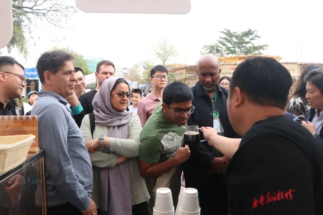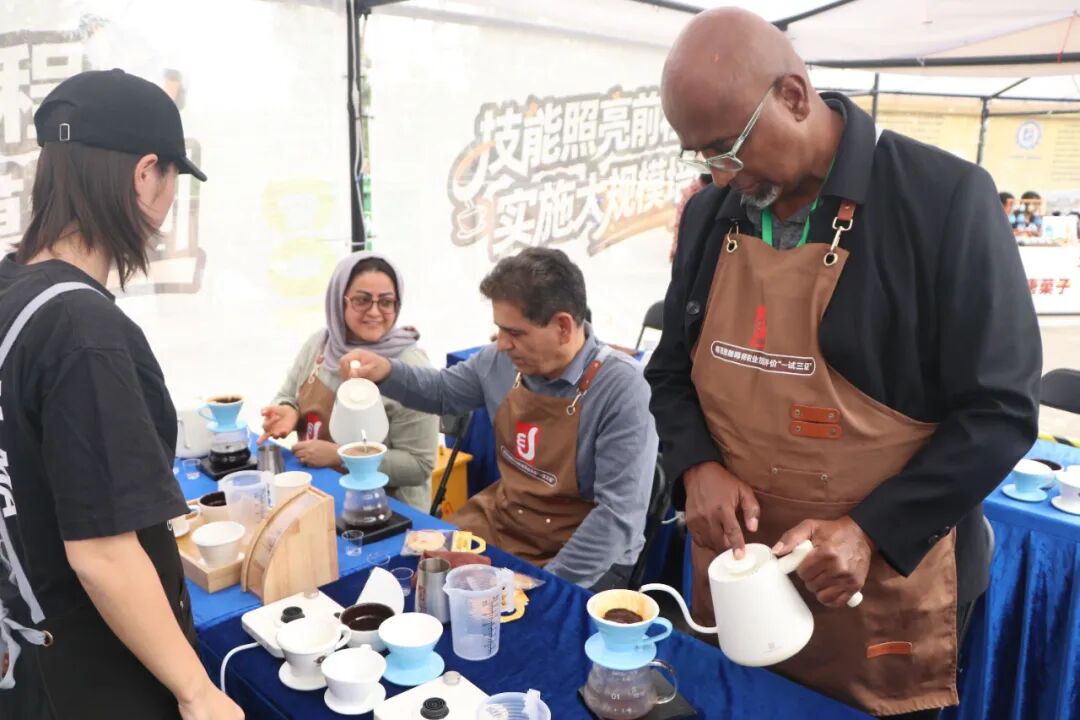 在大賽配套活動(dòng)中,外國(guó)友人現(xiàn)場(chǎng)品咖啡、逛市集,了解先進(jìn)咖啡設(shè)備,并在“即學(xué)即會(huì)”手沖咖啡公益課上體驗(yàn)咖啡沖煮。