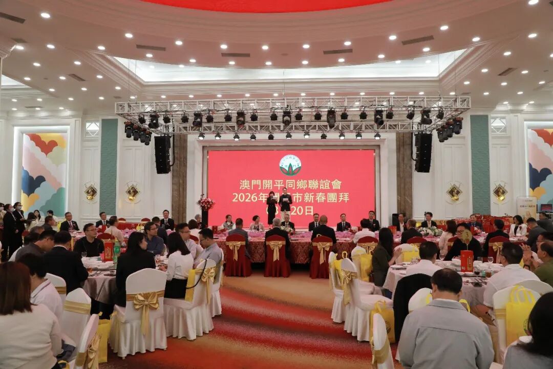 3月20日晚上,澳門開平同鄉聯誼會在潭江半島酒店舉辦2026年新春團拜活動,組織會員鄉親返鄉拜年,共敘桑梓情誼,共繪家鄉發展新藍圖。開平市委書記陳小曼,市委副書記、市長梁光挺,市人大常委會黨組書記、主任梁士元,市政協黨組書記、主席關耀東,市委副書記、政法委書記梁毅渝等市四套班子領導出席活動,與澳門開平籍鄉親歡聚一堂,暢敘鄉情友誼,共話美好未來。