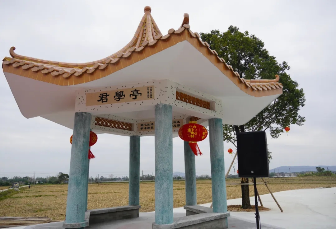 如今,宅群桑園村村場嶄新,道路平整,設施完善,魚塘護欄安全美觀,人居環境整潔宜人。君學亭靜靜立于村中,不僅是一道別樣的風景線,更承載著僑胞深沉的鄉情與期盼,見證著桑園村在“僑”力助推下邁向更美好的明天。
