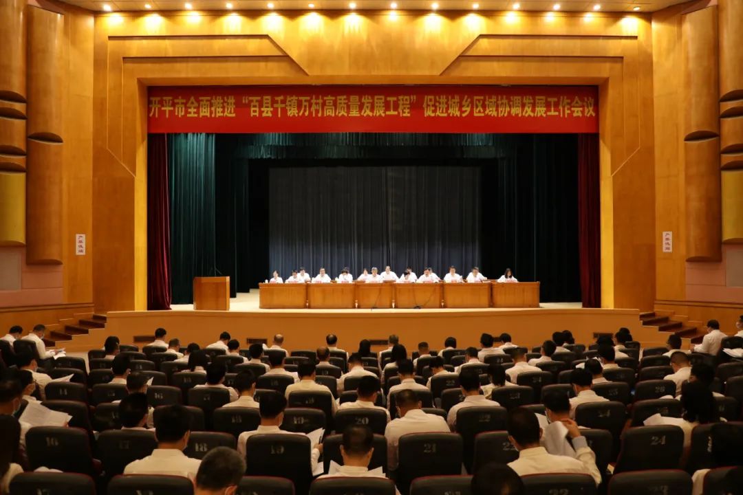 4月23日下午,開平市全面推進“百縣千鎮萬村高質量發展工程”(以下簡稱“百千萬工程”)促進城鄉區域協調發展工作會議召開,進一步統一思想、堅定信心,動員全市上下把精力集中到推動高質量發展的各項工作中,全力爭創省“百千萬工程”示范縣。開平市委書記余中華,市委副書記、市長陳小曼,市人大常委會黨組書記、主任李寶貞等四套班子成員參加會議。