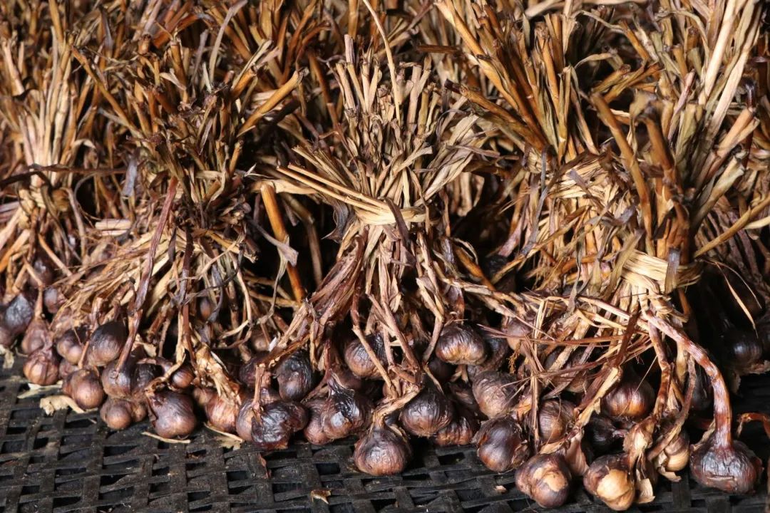 在開平,金山火蒜不只是一味調味品,更是一部寫滿華僑記憶的“活檔案”。這種蒜衣絳紅、肉質瓷白的火蒜,其制作技藝可追溯至清代。最初,人們偶然發現經煙火熏烤的蒜頭不僅風味獨特,更耐儲存,于是逐步形成了以稻草熏烘為核心的加工工藝。
