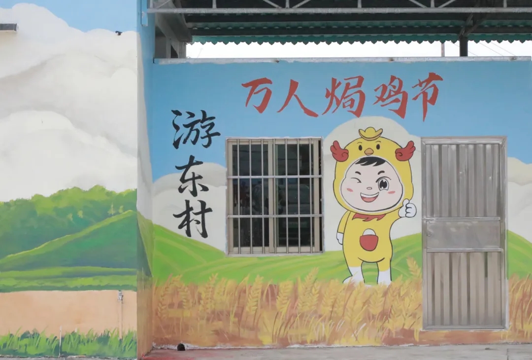 金雞鎮游東村黨支部書記、村委會主任劉相榮表示, 游東村這幾幅墻繪都是結合了江門中微子實驗等元素原創的,還結合了近幾年游東村的萬人焗雞節活動元素。