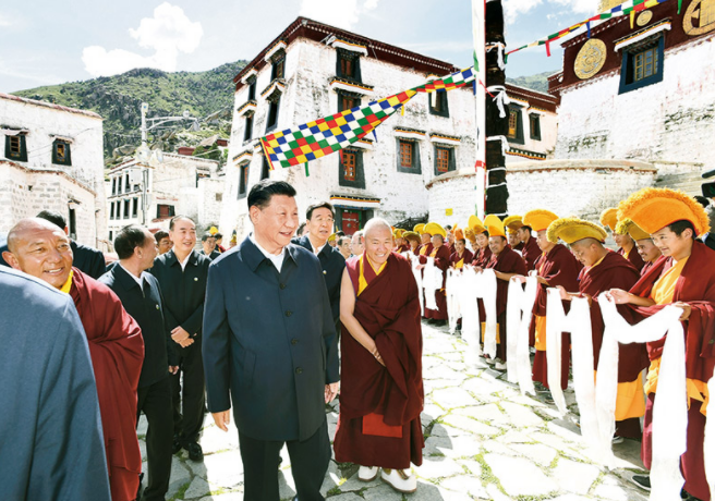 這是22日下午,習近平在位于拉薩西郊的哲蚌寺考察。新華社記者 謝環(huán)馳/攝