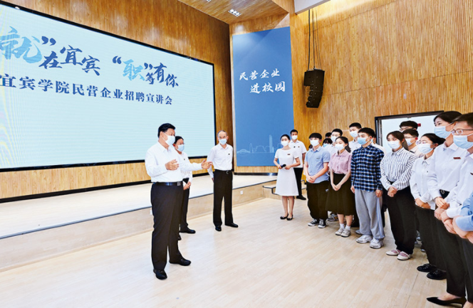 向正在參加企業(yè)招聘宣講會的教師、學生、企業(yè)負責人了解企業(yè)招工需求和畢業(yè)生簽約率等情況。新華社記者 李學仁/攝