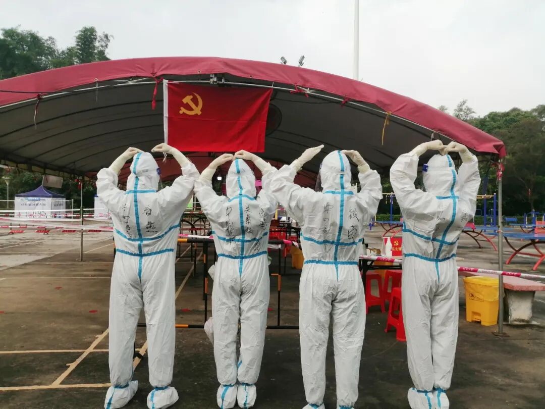 這次戰疫,背后還有很多感人故事。隊長陳景成、隊長關敏容已連續帶隊作戰了四天;關炳亮同志去江門封控區支援回來居家隔離完畢后的第二天,立馬投入這次全市核酸采樣工作中;還有部分隊員早上5點出發鄉鎮核酸采樣,中午隨便吃個飯后,下午2點多又立馬投入市區的采樣工作中,一直奮戰到晚上11點多,回到家已是凌晨......