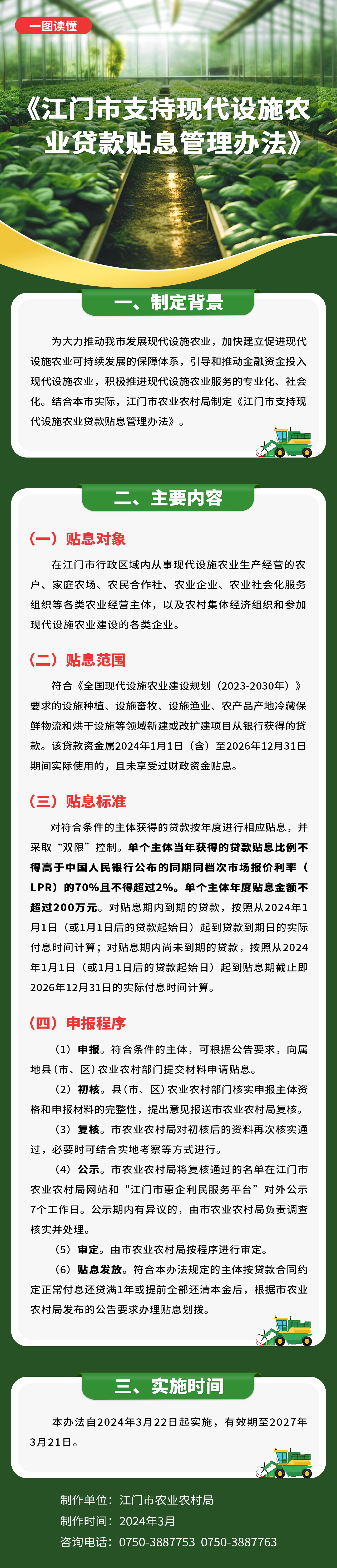關稿件:關于印發《江門市支持現代設施農業貸款貼息管理辦法》的通知
