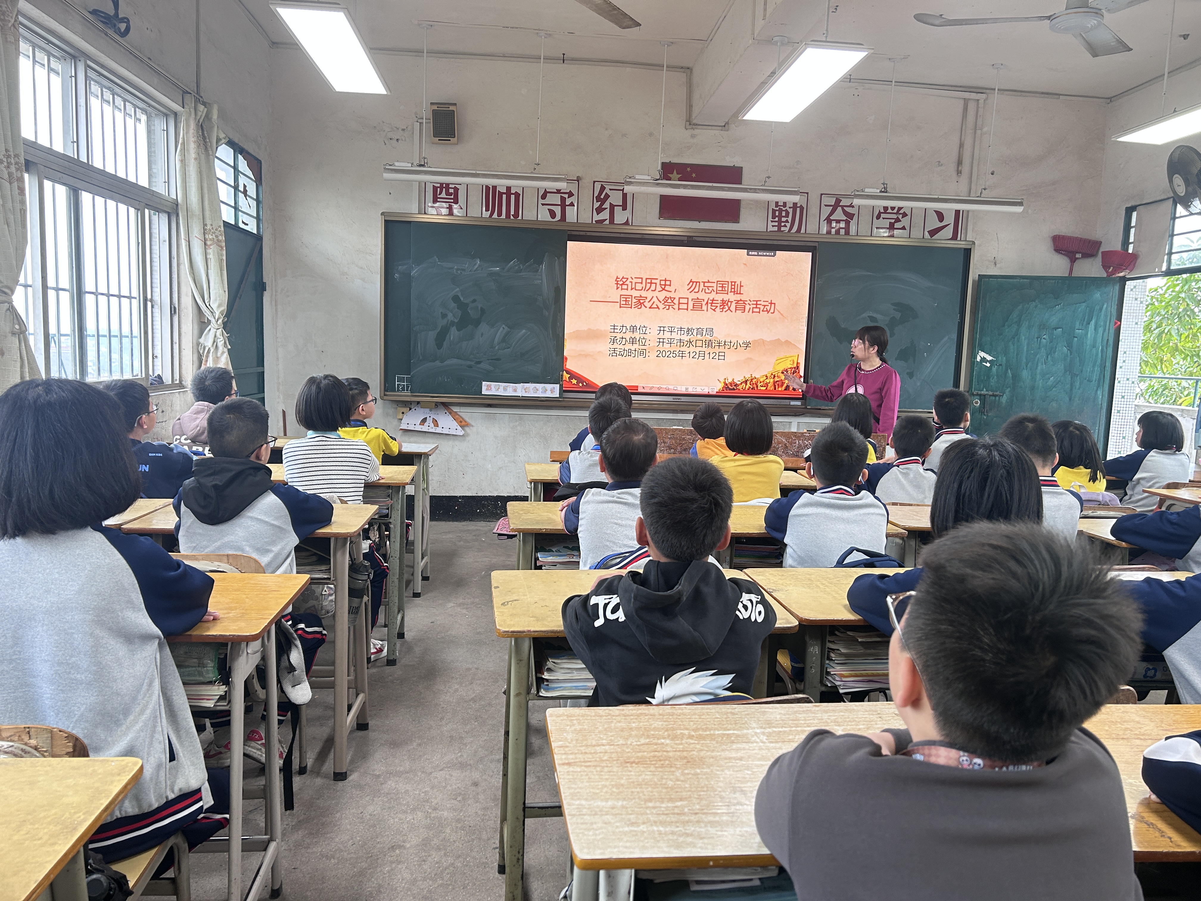 為教育和引導廣大青少年銘記歷史,激發其愛黨愛國之情和民族使命感,由開平市教育局主辦的2025年開平市弘揚以偉大建黨精神為源頭的中國共產黨人精神譜系系列活動——國家公祭日主題教育系列活動走進轄內中小學。