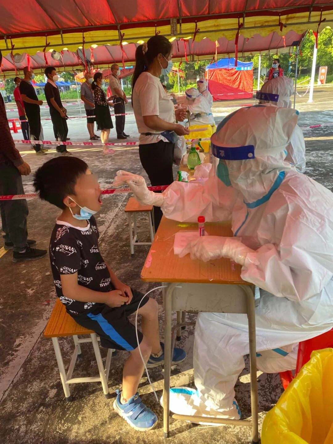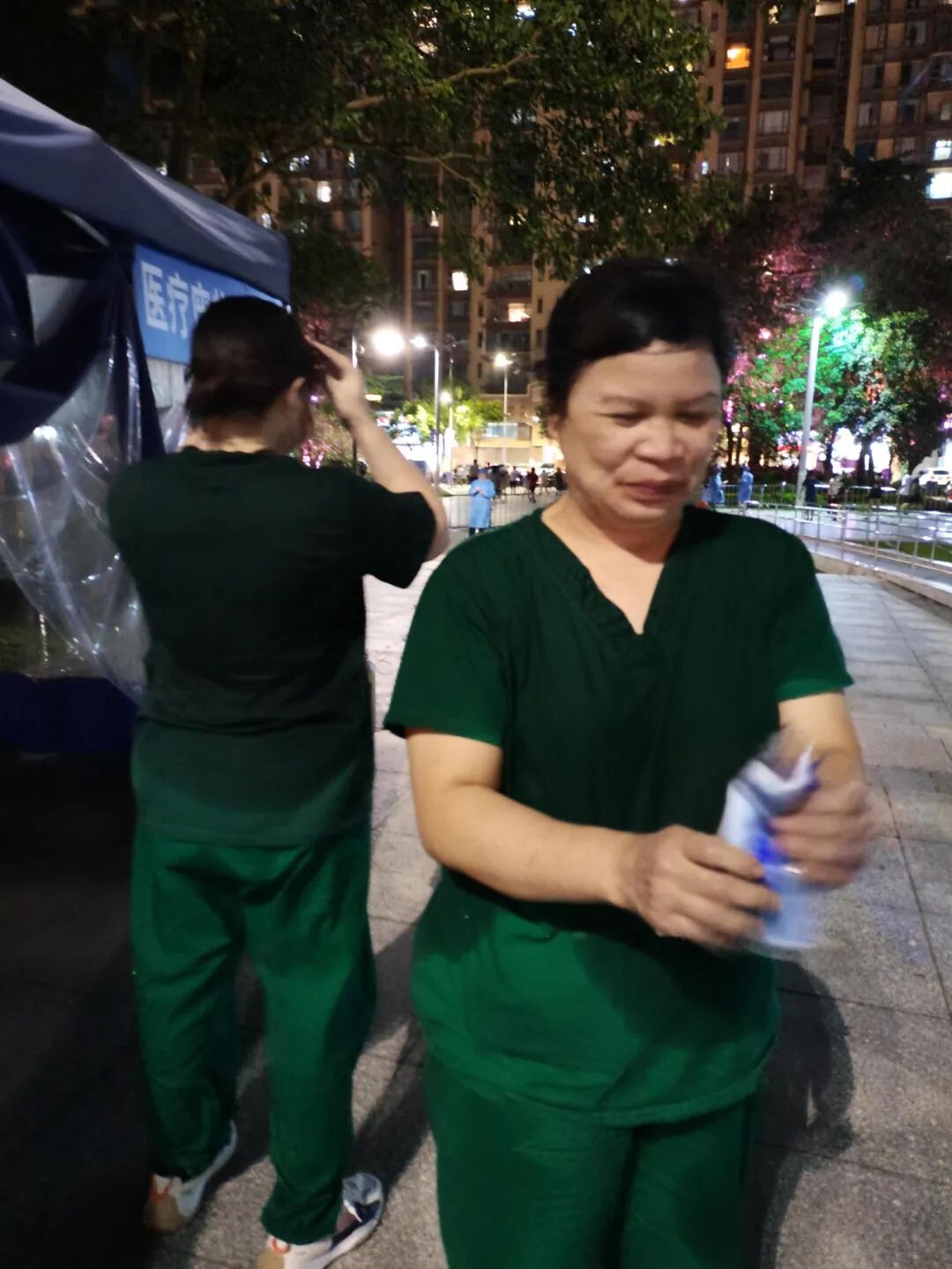 這次戰疫,背后還有很多感人故事。隊長陳景成、隊長關敏容已連續帶隊作戰了四天;關炳亮同志去江門封控區支援回來居家隔離完畢后的第二天,立馬投入這次全市核酸采樣工作中;還有部分隊員早上5點出發鄉鎮核酸采樣,中午隨便吃個飯后,下午2點多又立馬投入市區的采樣工作中,一直奮戰到晚上11點多,回到家已是凌晨......