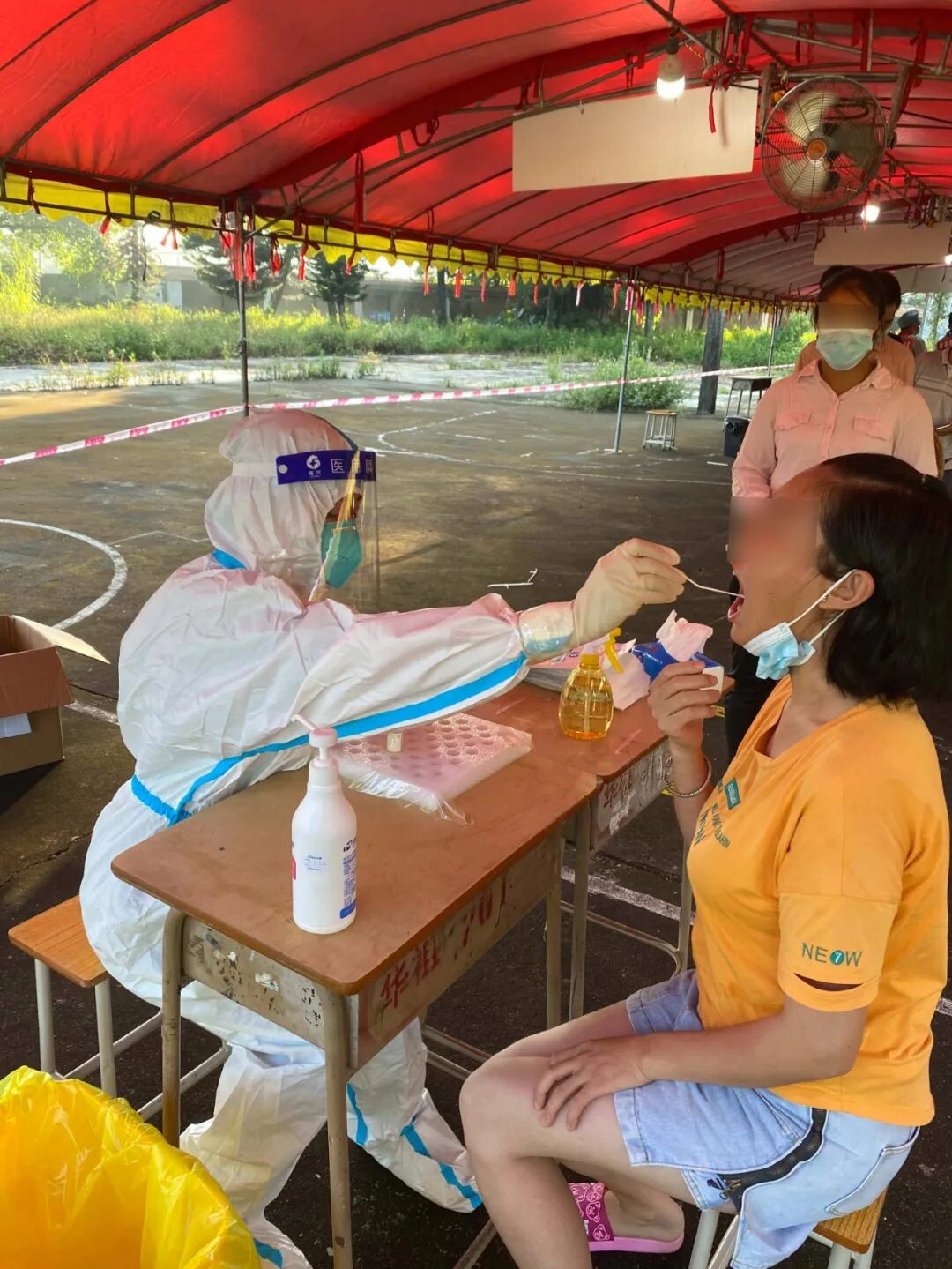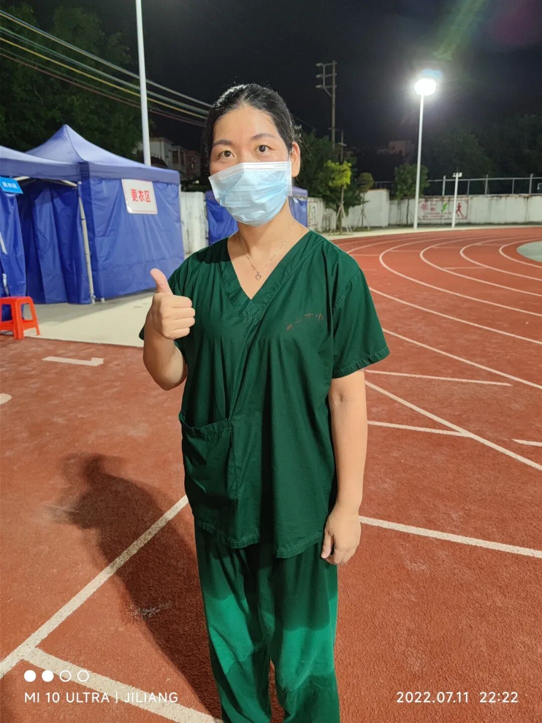 何秀梅是逕頭小學核酸采樣組的隊長,她連續3天帶隊作戰,而她丈夫也是市中心醫院一名支援核酸采樣的醫務人員,這對夫妻檔表示:“作為醫務人員,保障人民群眾生命健康安全是自己職責所在。“何秀梅說:“這幾天天氣太熱,大家都不容易,我會在隊員背后寫上起始工作時間,科學管理,并經常詢問隊員的身體狀況,如有不適,立即更換。”
