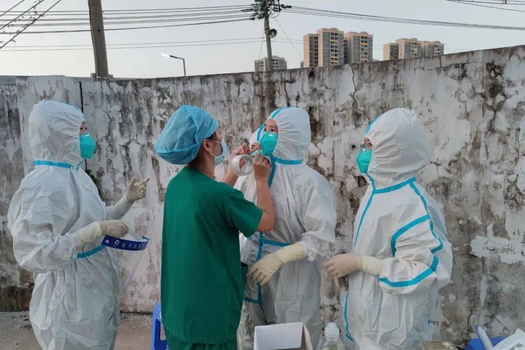 全市核酸采樣,市中心醫院分派多個小組支援不同地方。趙萌是一名黨員,也是其中一組的隊長,11日那天,穿著防護服在烈日下工作的她出現了中暑癥狀,頭暈嘔吐,此時隊里也有兩人身體不適,她果斷讓救護車把兩名隊員接回醫院,而自己在緩了口氣后又繼續投入工作,此情此景,滿載著一名共產黨員甘于為黨的事業奉獻一切的情懷。