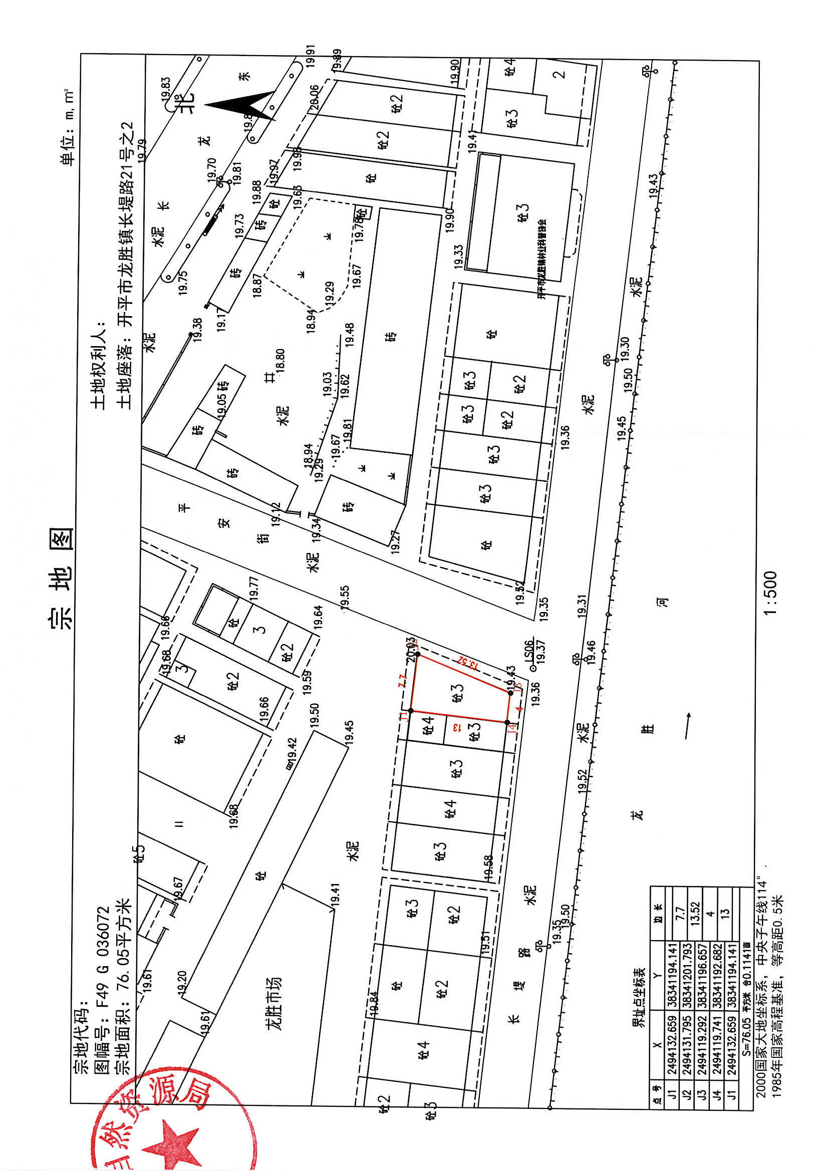 坐落在開平市龍勝圩長堤路21號-2(現編門牌:開平市龍勝鎮長堤路21號之2)[開府國用(1998)第01047號]的土地使用權,原土地面積77.5平方米,現重新測繪后土地面積76.05平方米。用地單位馮錫權現申請辦理不動產變更登記。若對該用地界線范圍內的用地或地上建筑物權屬有異議者,自公告之日起15個工作日內向開平市自然資源局龍勝自然資源所書面提出意見。如無異議,公告期滿即給該單位辦理不動產登記有關手續。用地界線詳見附圖。