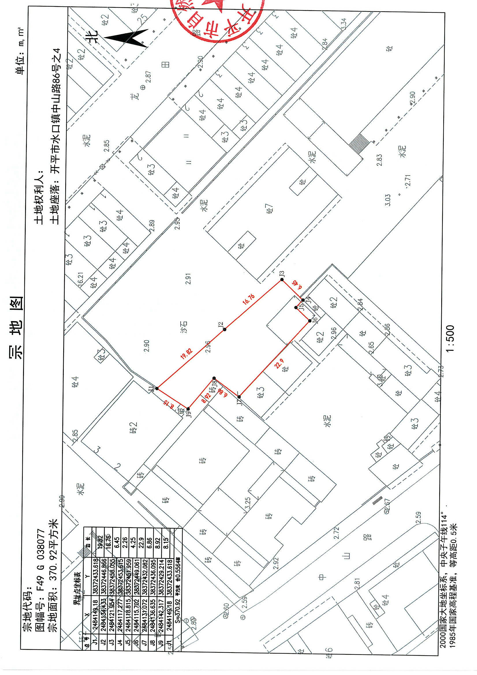 坐落在開平市水口鎮(zhèn)中山路糧所倉庫祠堂后(中山路92-96號)(現(xiàn)編門牌:開平市水口鎮(zhèn)中山路86號之3、開平市水口鎮(zhèn)中山路86號之4)[開府國用(2009)第05485號]的土地使用權(quán),原土地面積5740.77平方米,現(xiàn)重新測繪后根據(jù)宗地實(shí)際使用情況,宗地分割為:86號之3宗地:3145.32平方米和86號之4宗地:370.92平方米。用地單位開平市糧食局直屬庫(開平市譚江糧油儲備有限公司)現(xiàn)申請辦理不動產(chǎn)變更登記。若對該用地界線范圍內(nèi)的用地或地上建筑物權(quán)屬有異議者,自公告之日起15個工作日內(nèi)向開平市自然資源局水口自然資源所書面提出意見。如無異議,公告期滿即給該單位辦理不動產(chǎn)登記有關(guān)手續(xù)。用地界線詳見附圖。