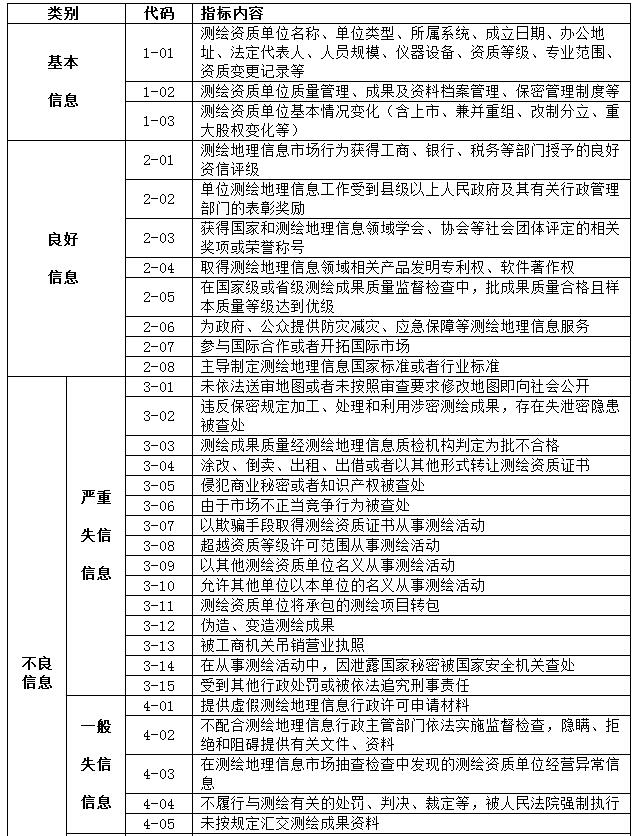 測繪地理信息行業信用指標體系