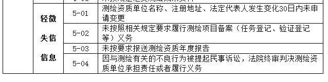 (三)不良信息是指測繪資質單位違反測繪地理信息及相關法律法規和政策規定產生失信行為的信息。不良信息分為嚴重失信信息、一般失信信息和輕微失信信息。
