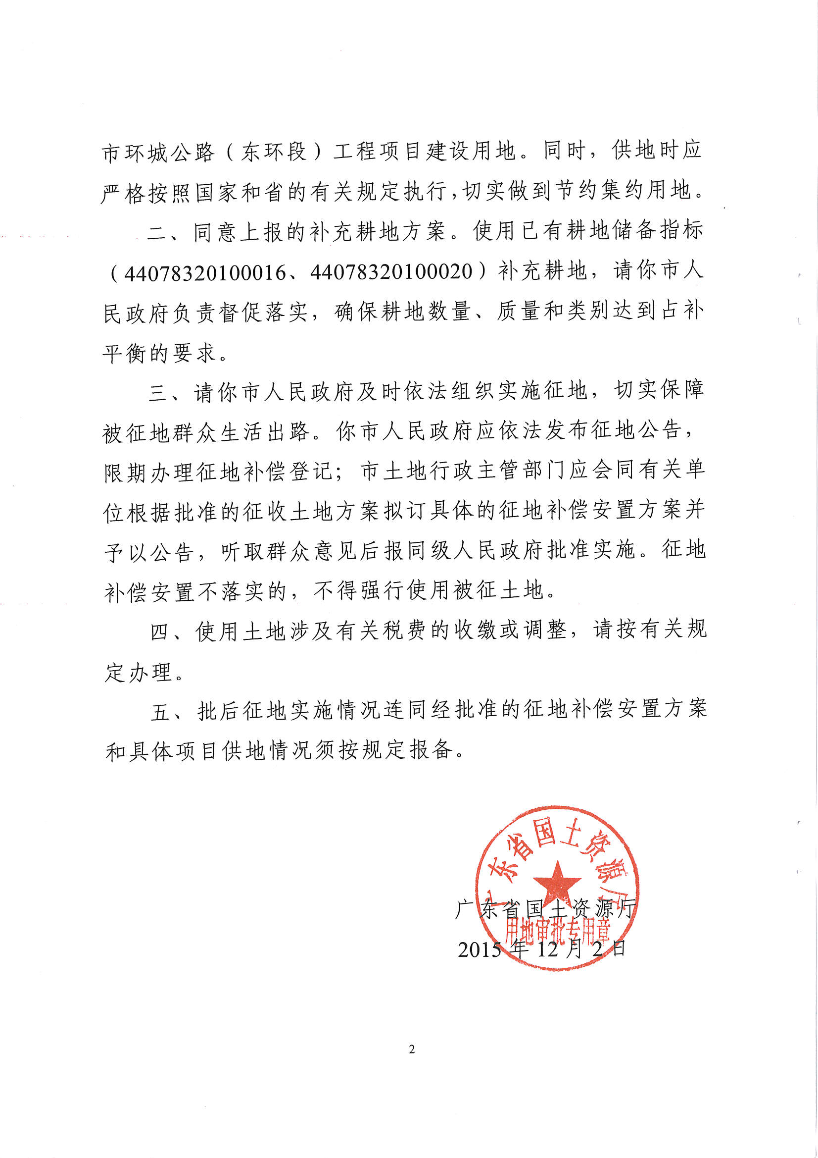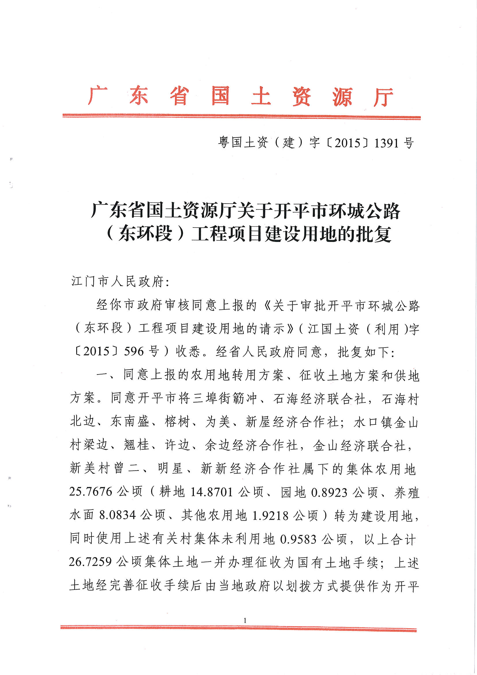 開平市環城公路(東環段)工程項目建設用地的批復
