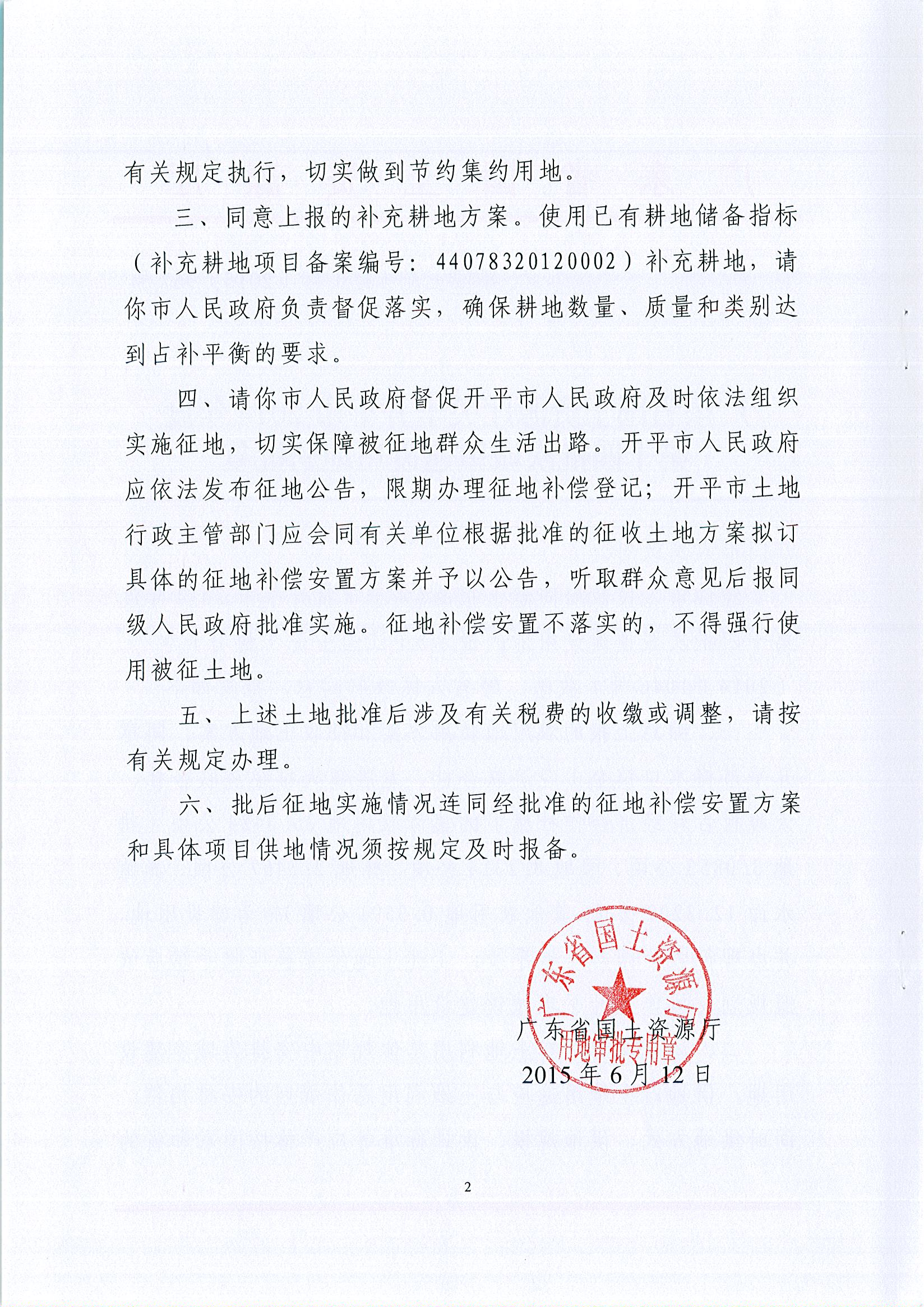 開平市2014年度第十四批次城鎮建設用地的批復