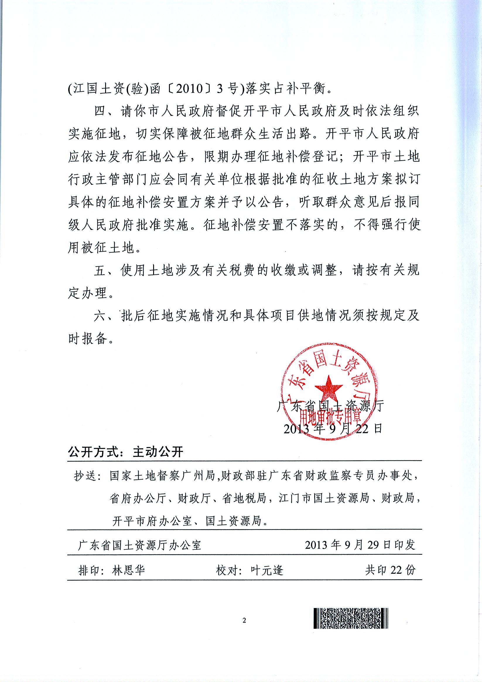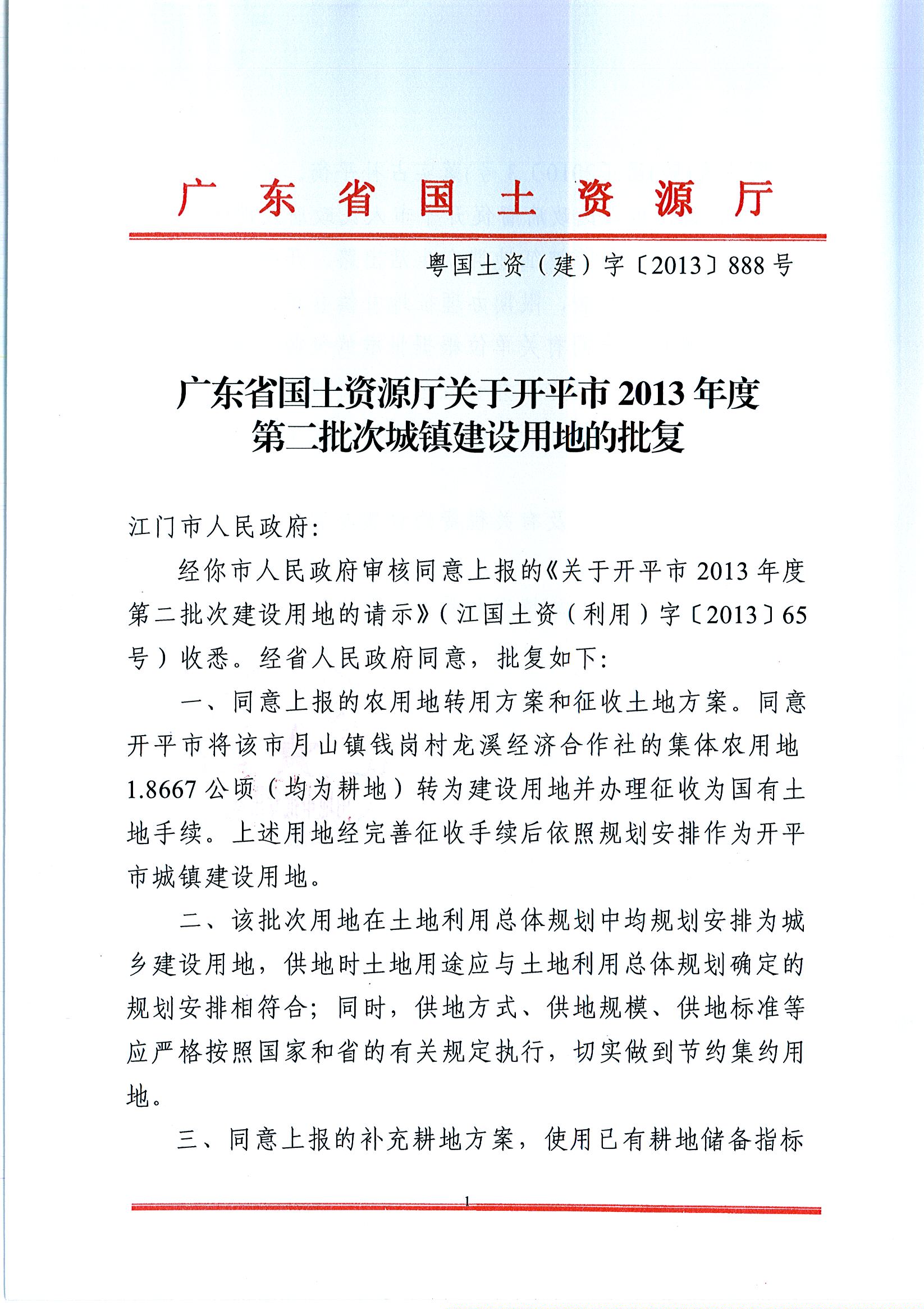 開(kāi)平市2013年度第二批次城鎮(zhèn)建設(shè)用地的批復(fù)