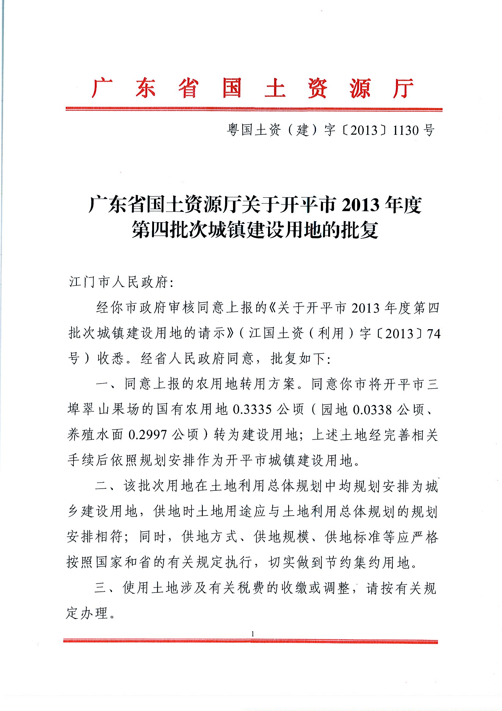 開平市2013年度第四批次城鎮建設用地的批復