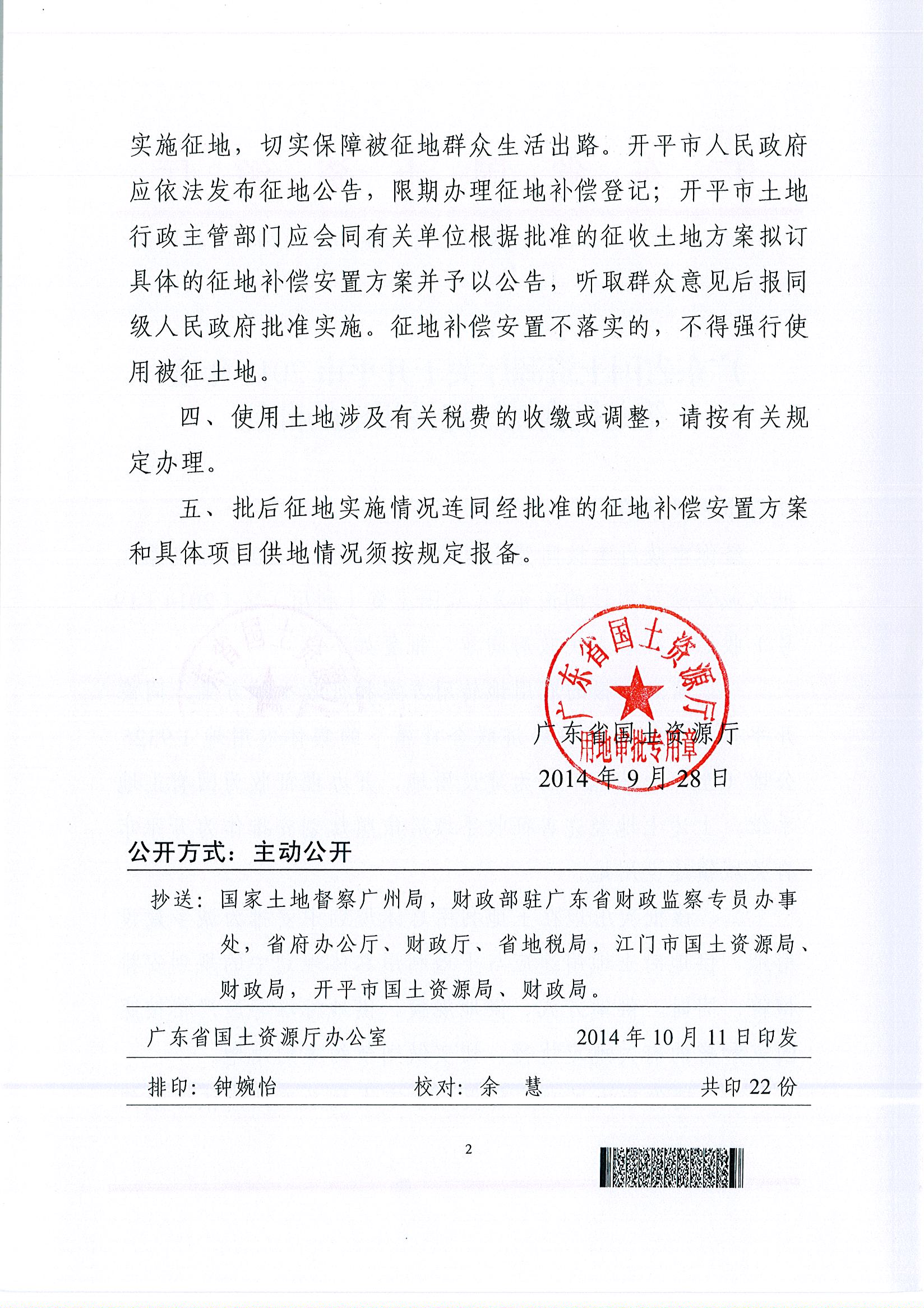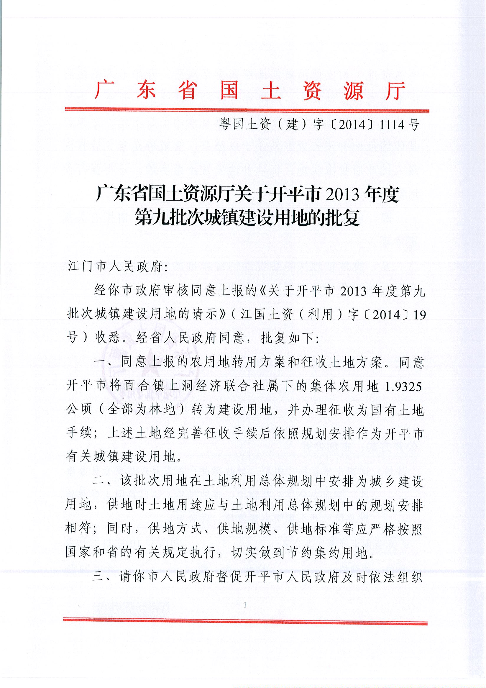 開平市2013年度第九批次城鎮(zhèn)建設(shè)用地的批復(fù)