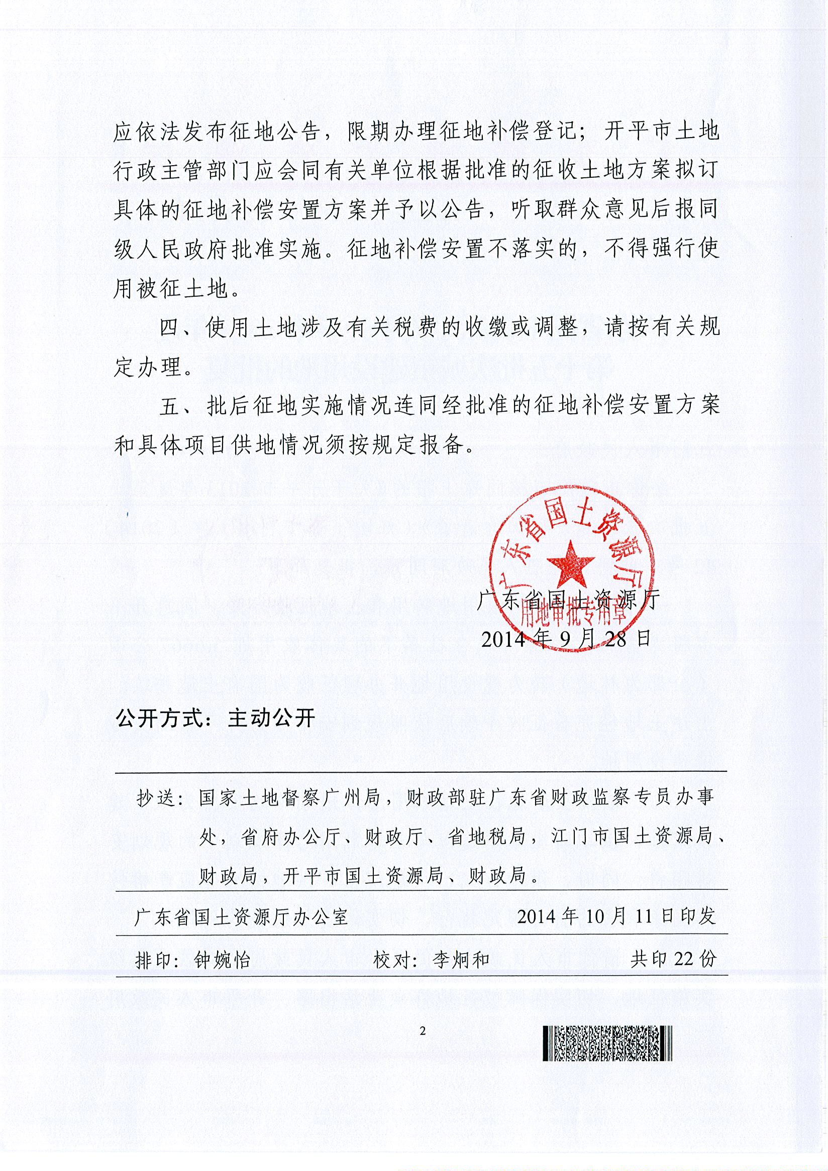 開平市2013年度第十五批次城鎮建設用地的批復