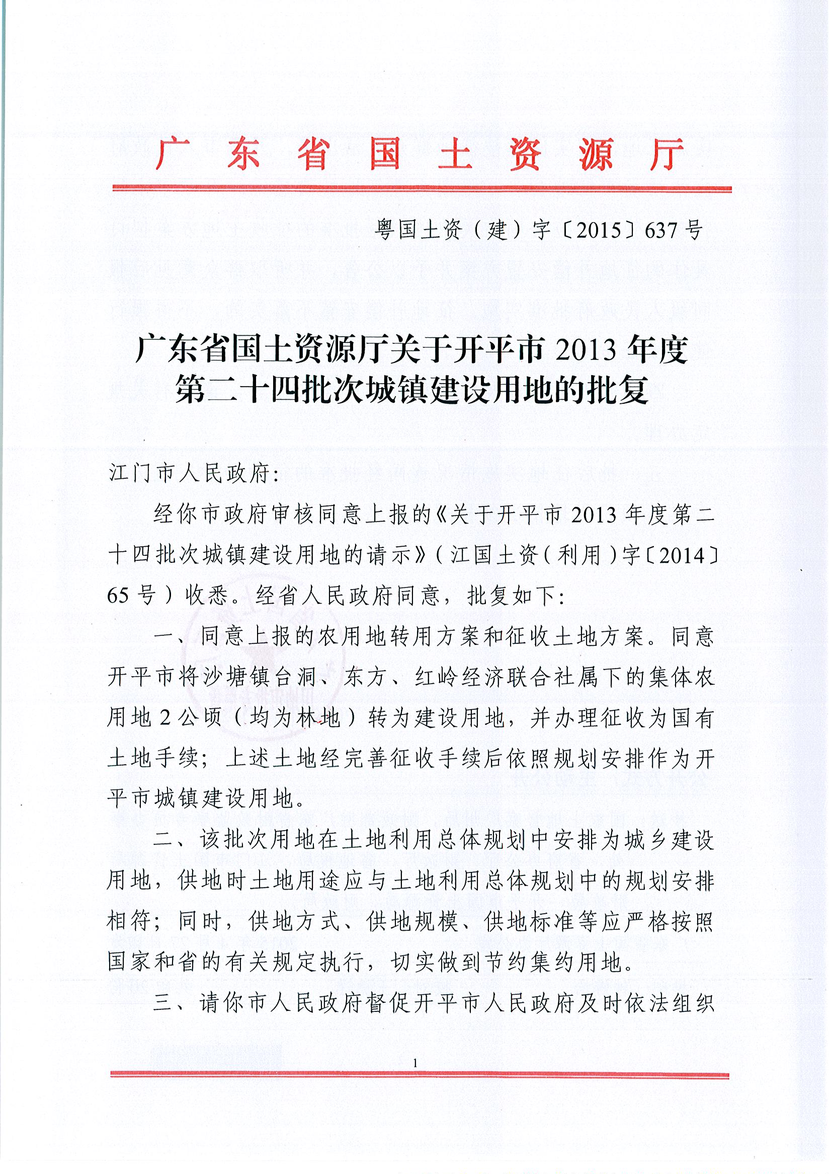 開平市2013年度第二十四批次城鎮建設用地的批復