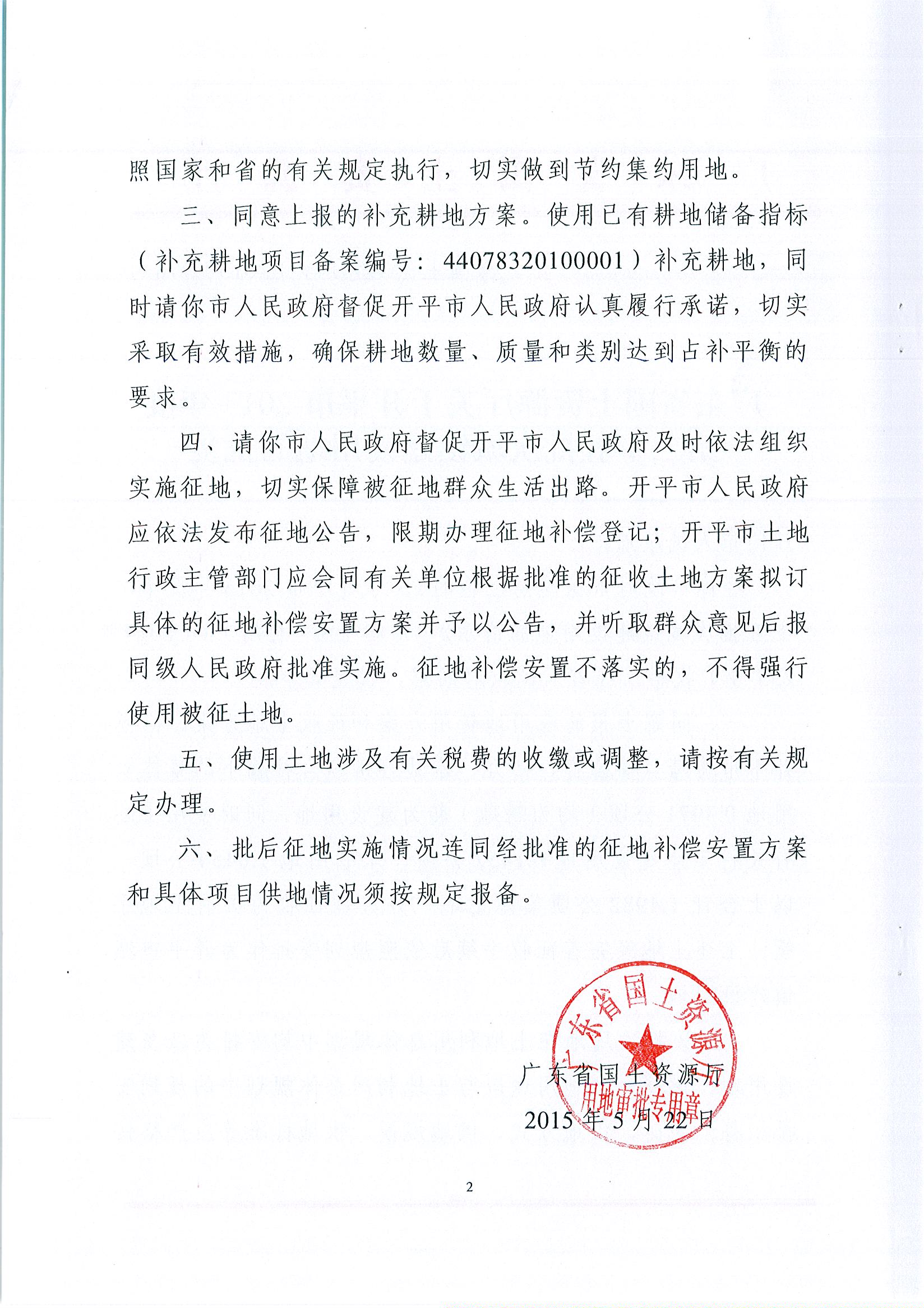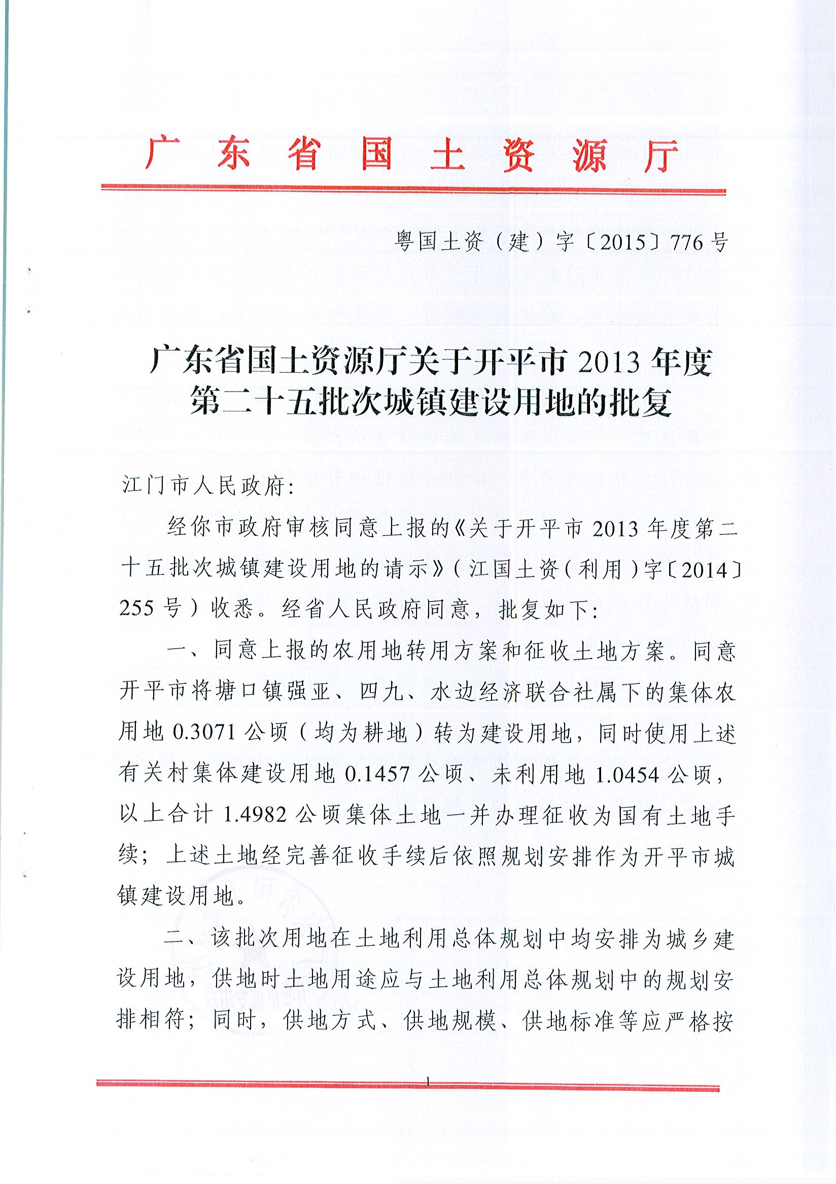 開(kāi)平市2013年度第二十五批次城鎮(zhèn)建設(shè)用地的批復(fù)