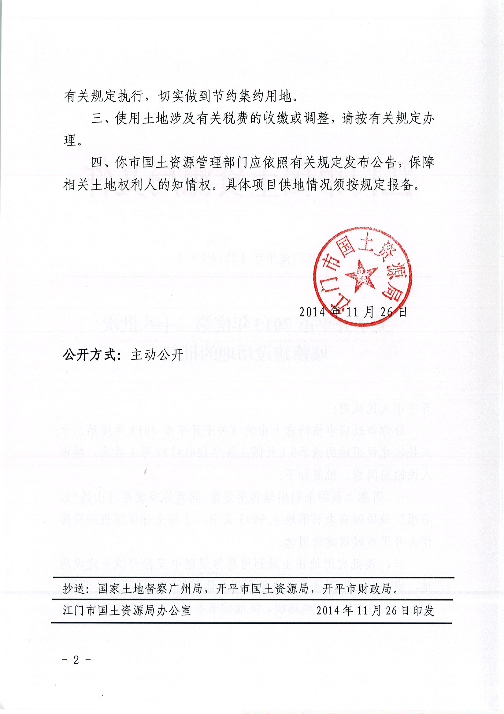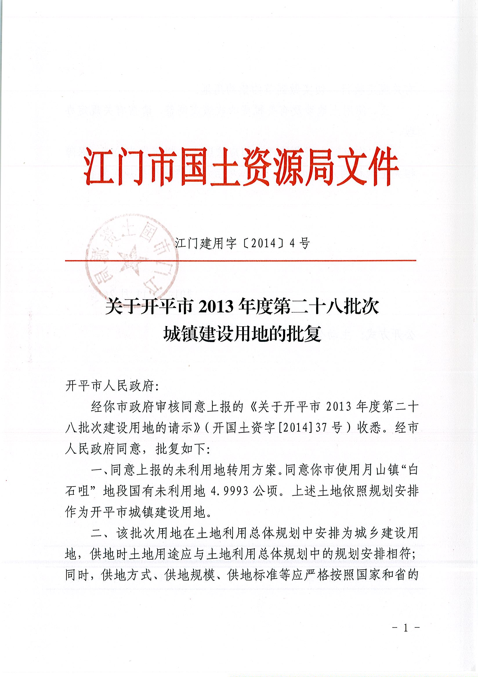 開平市2013年度第二十八批次城鎮建設用地的批復