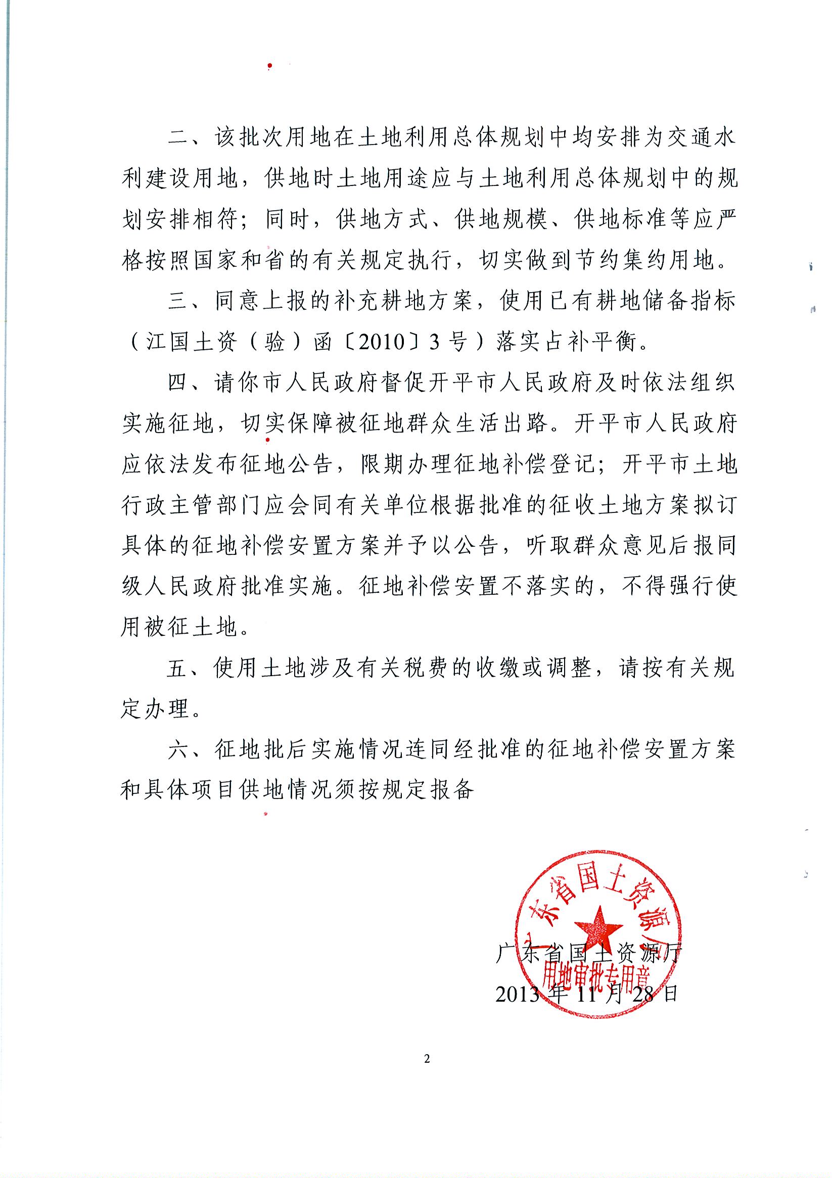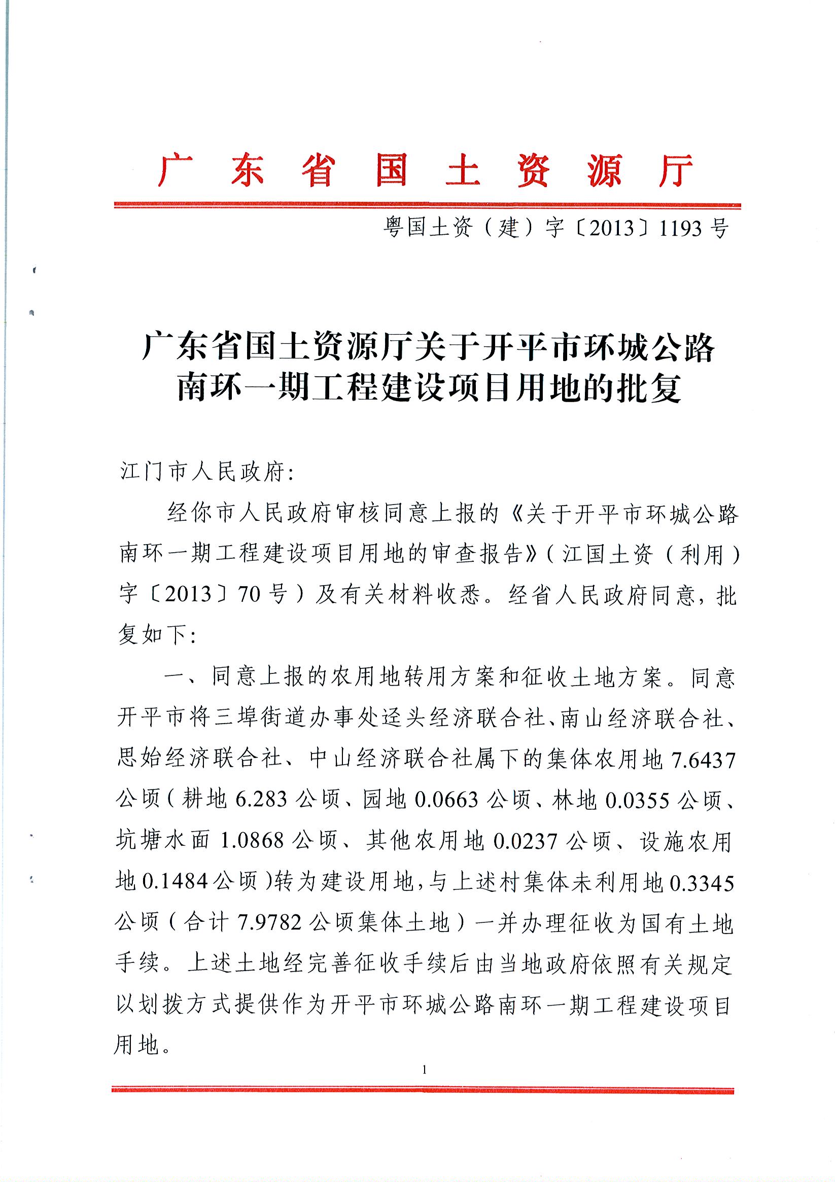 開平市環(huán)城公路南環(huán)一期工程建設項目用地的批復