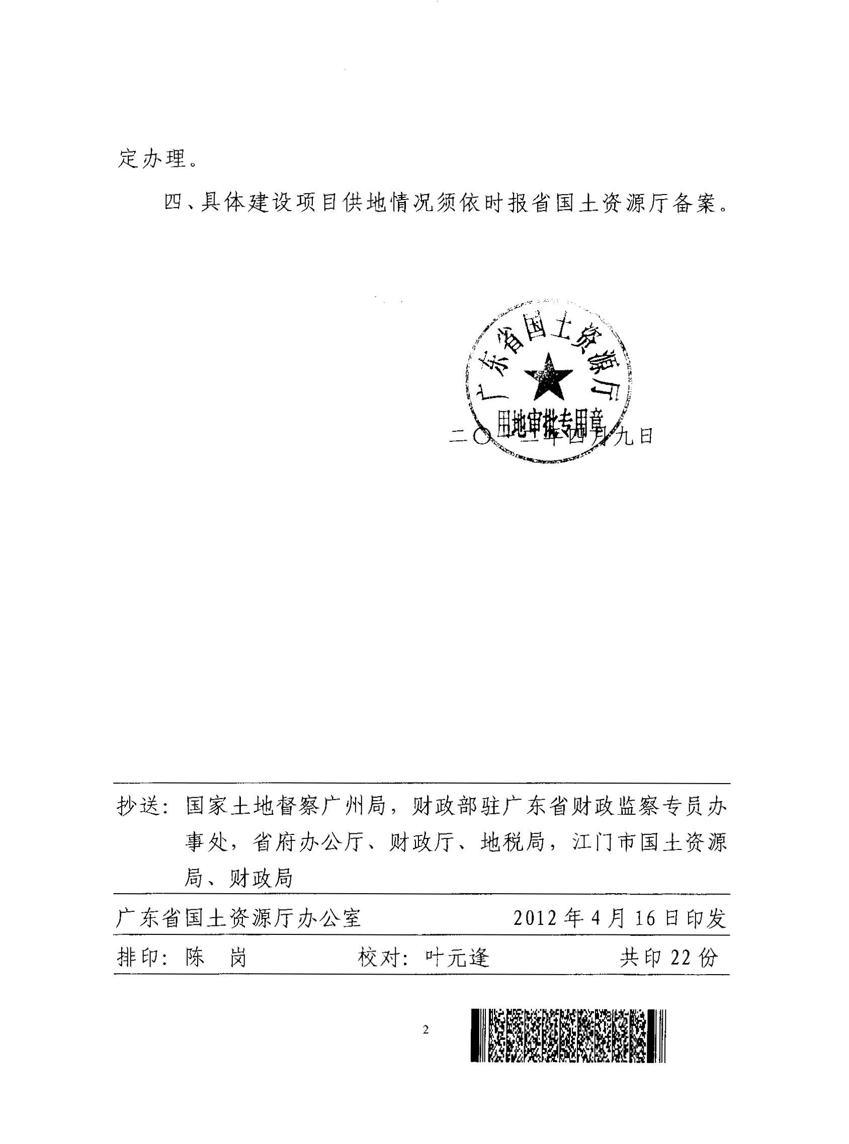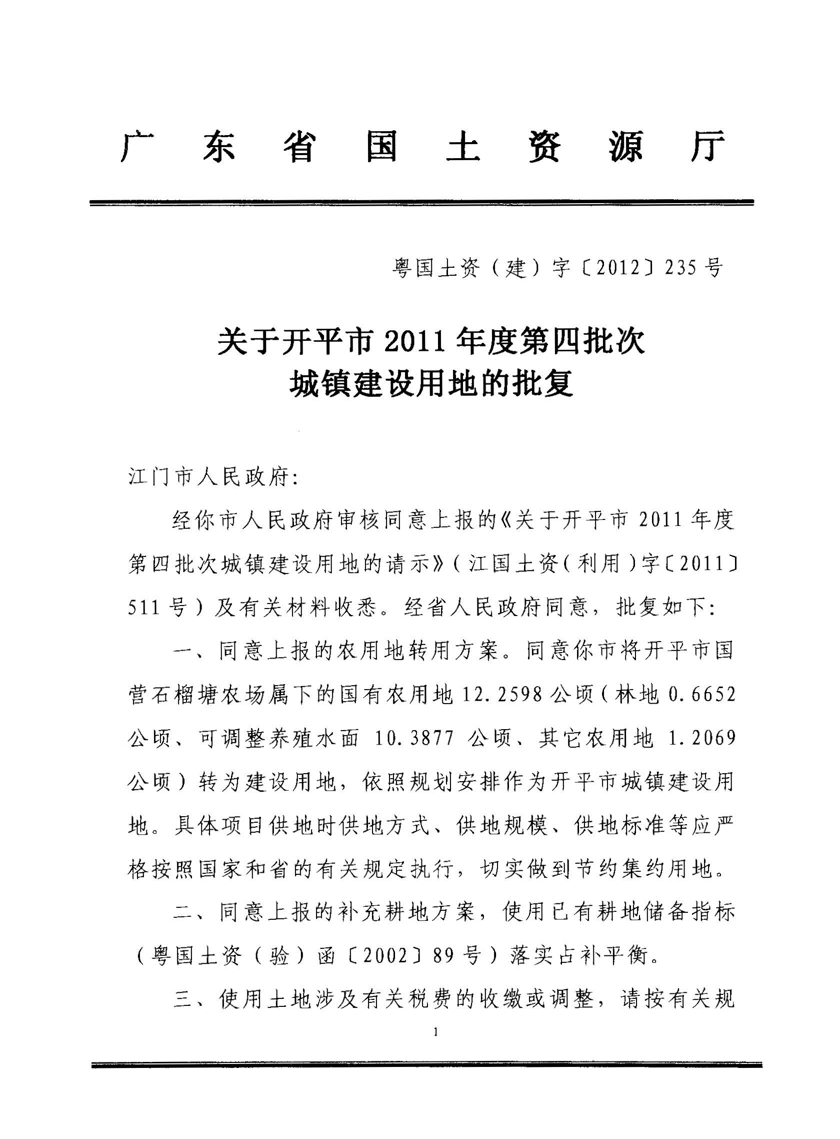 開平市2011年度第四批次城鎮(zhèn)建設用地的批復