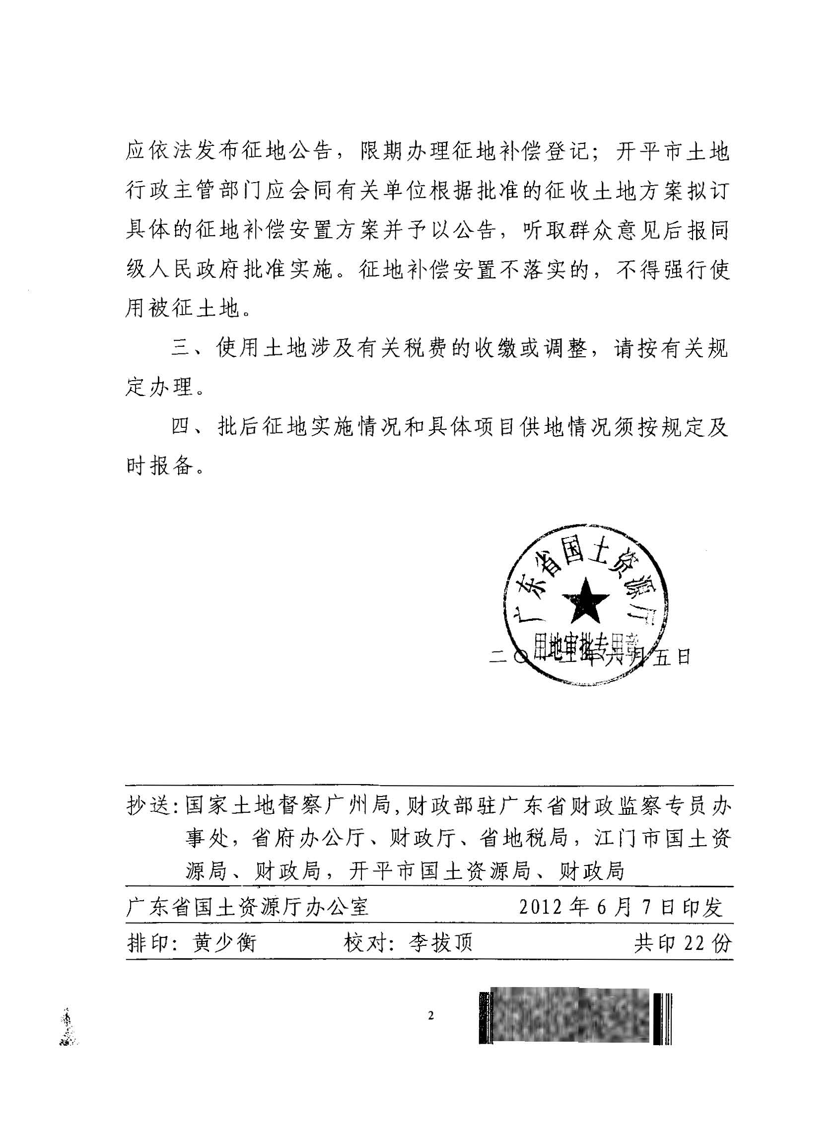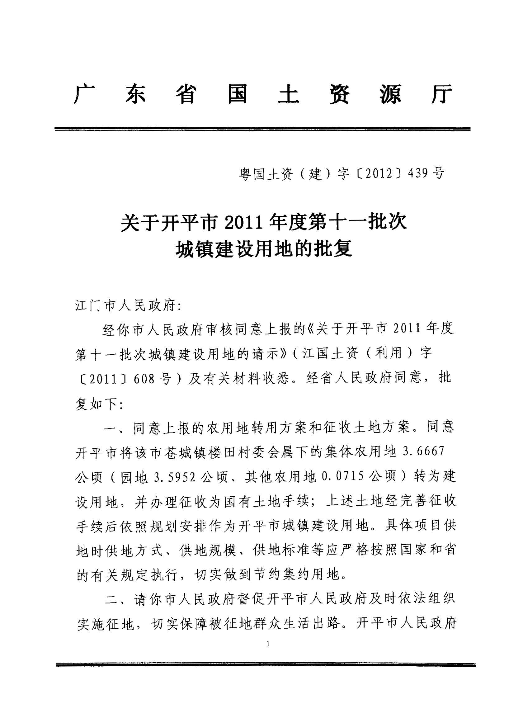 開平市2011年度第十一批次城鎮建設用地的批復