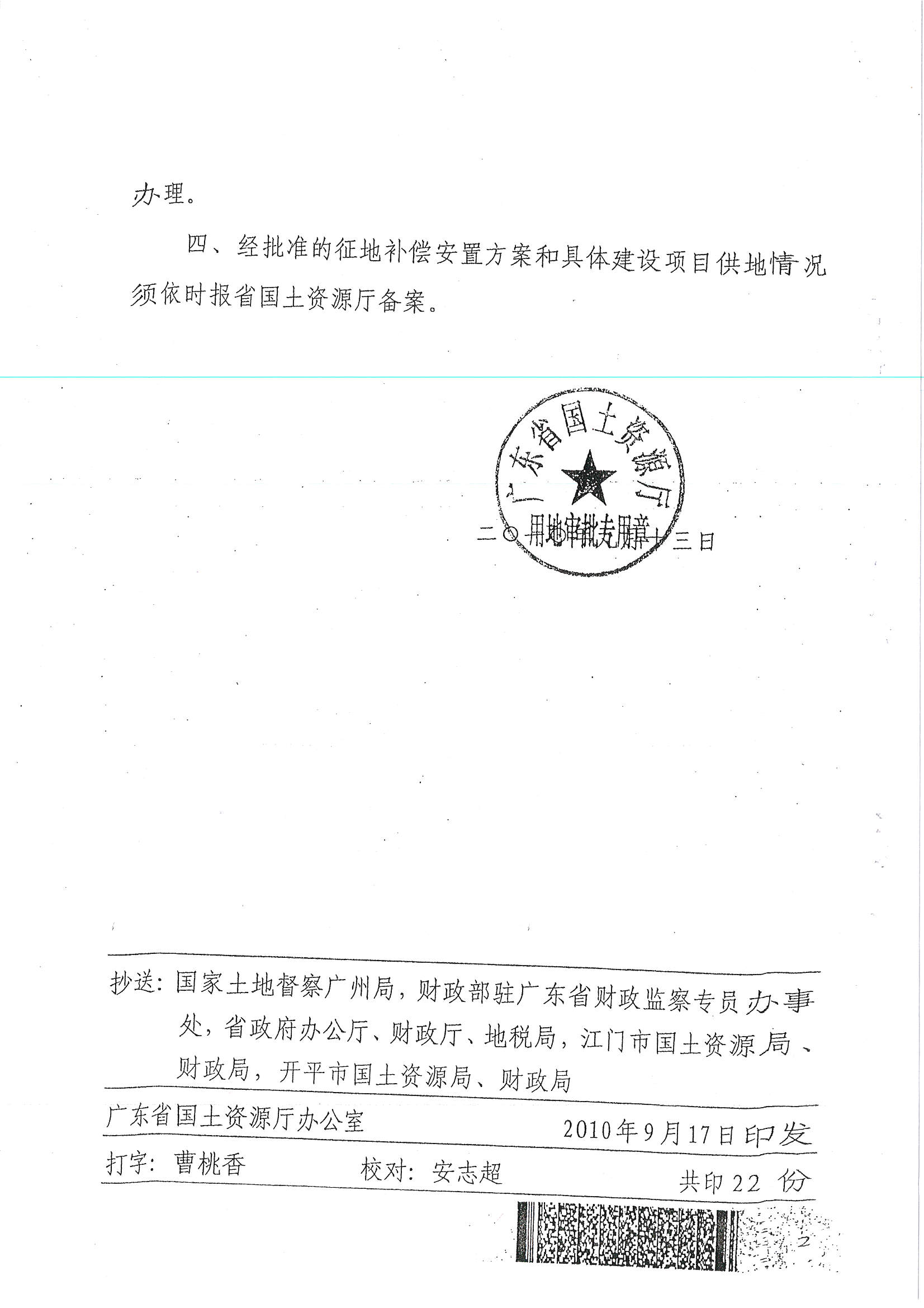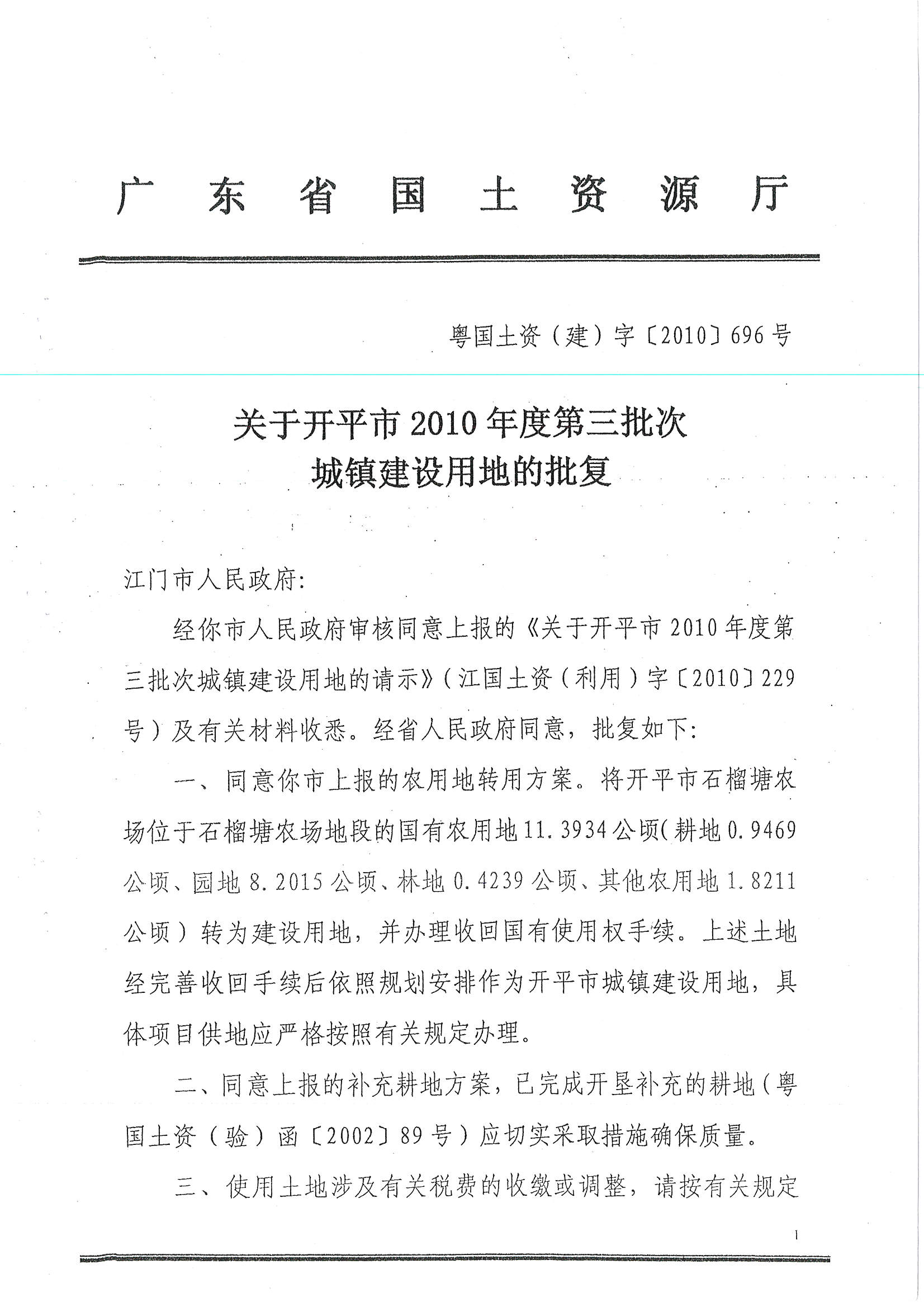 開平市2010年度第三批次城鎮建設用地的批復