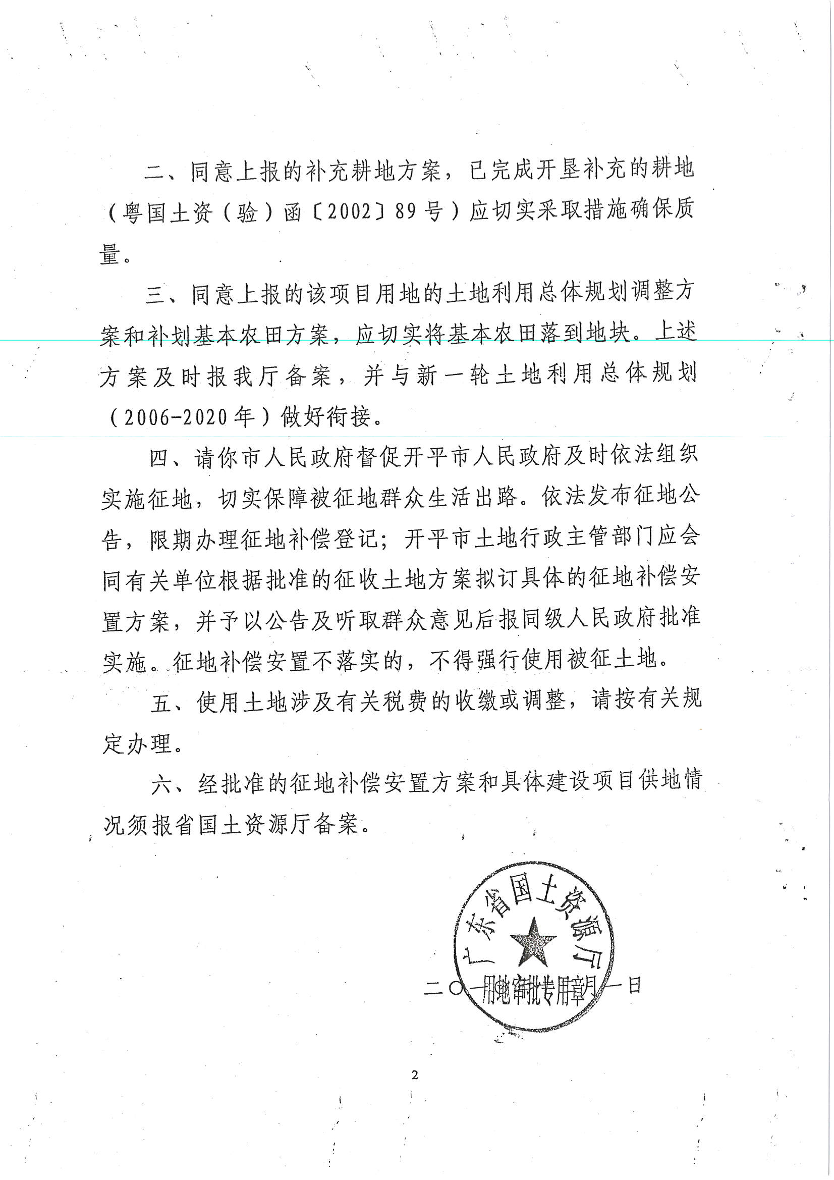 開陽高速公路梁金山立交至開平市區連接線工程建設用地的批復