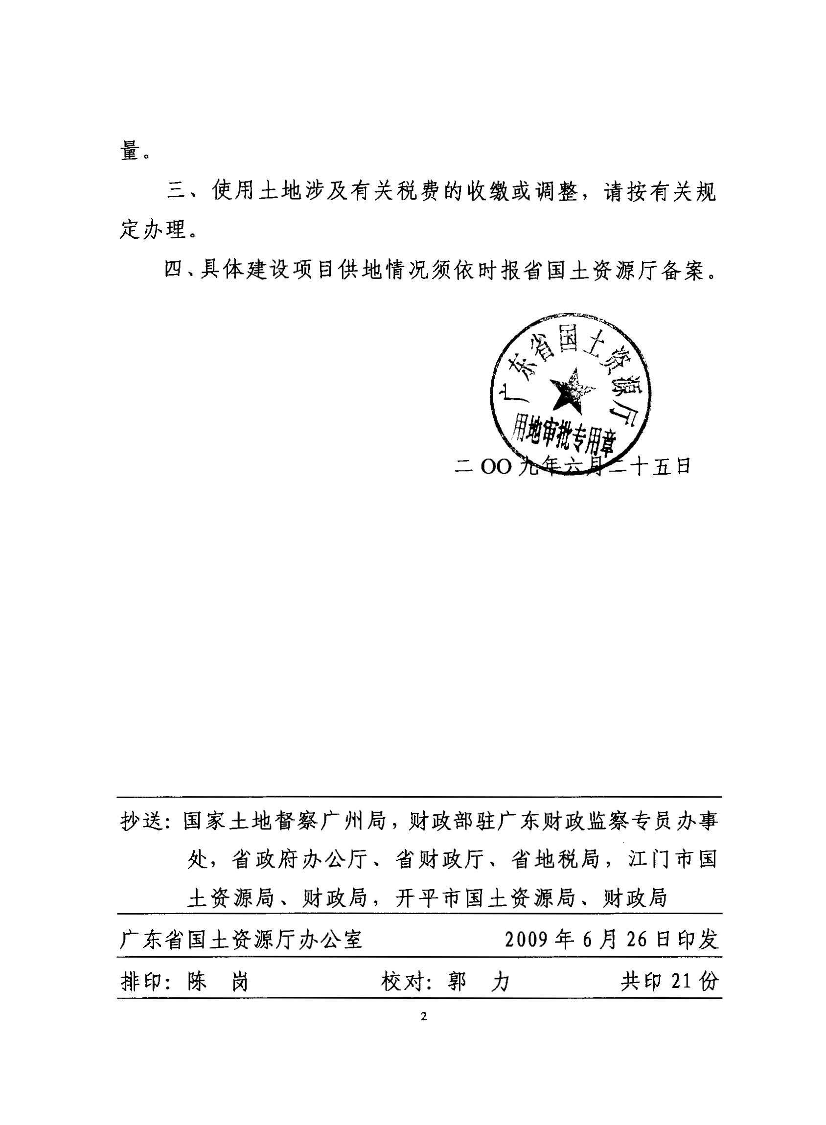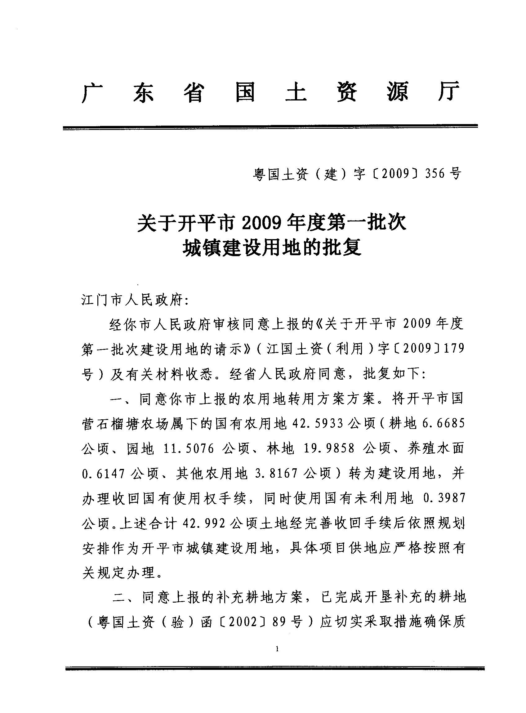 開平市2009年度第一批次城鎮建設用地的批復