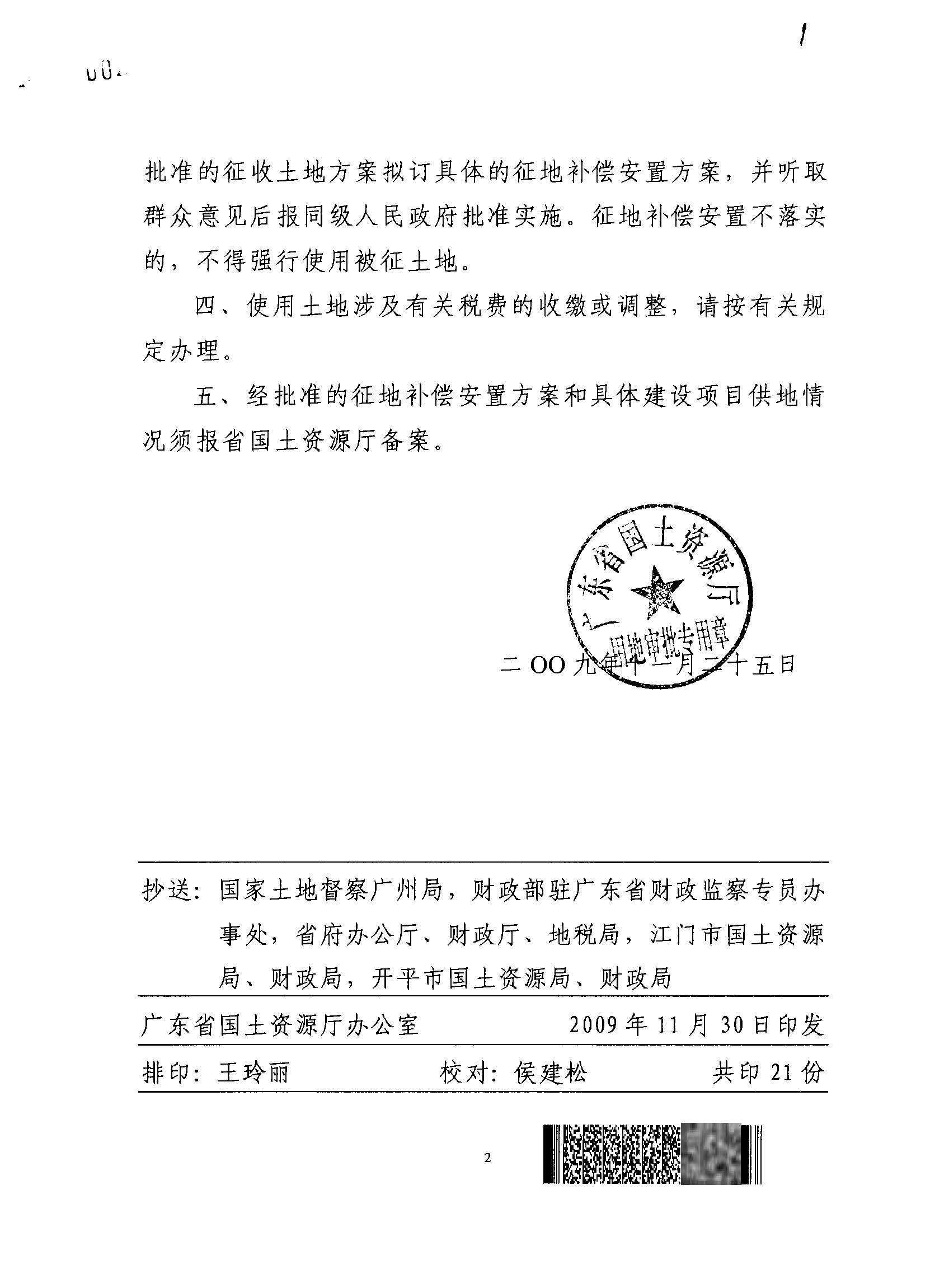開平市2008年度第五批次城鎮(zhèn)建設(shè)用地的批復(fù)