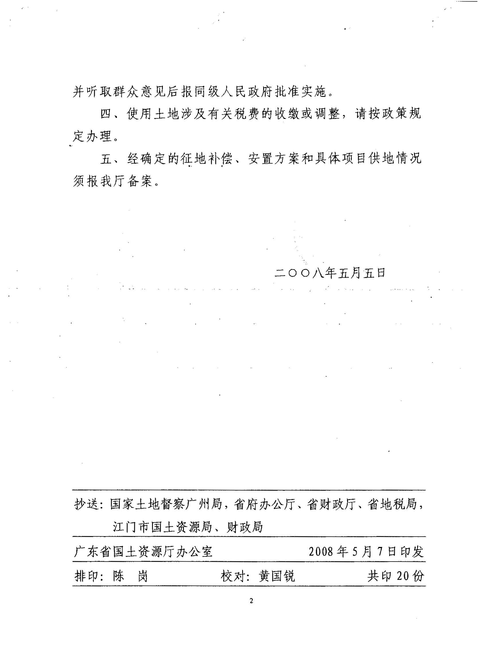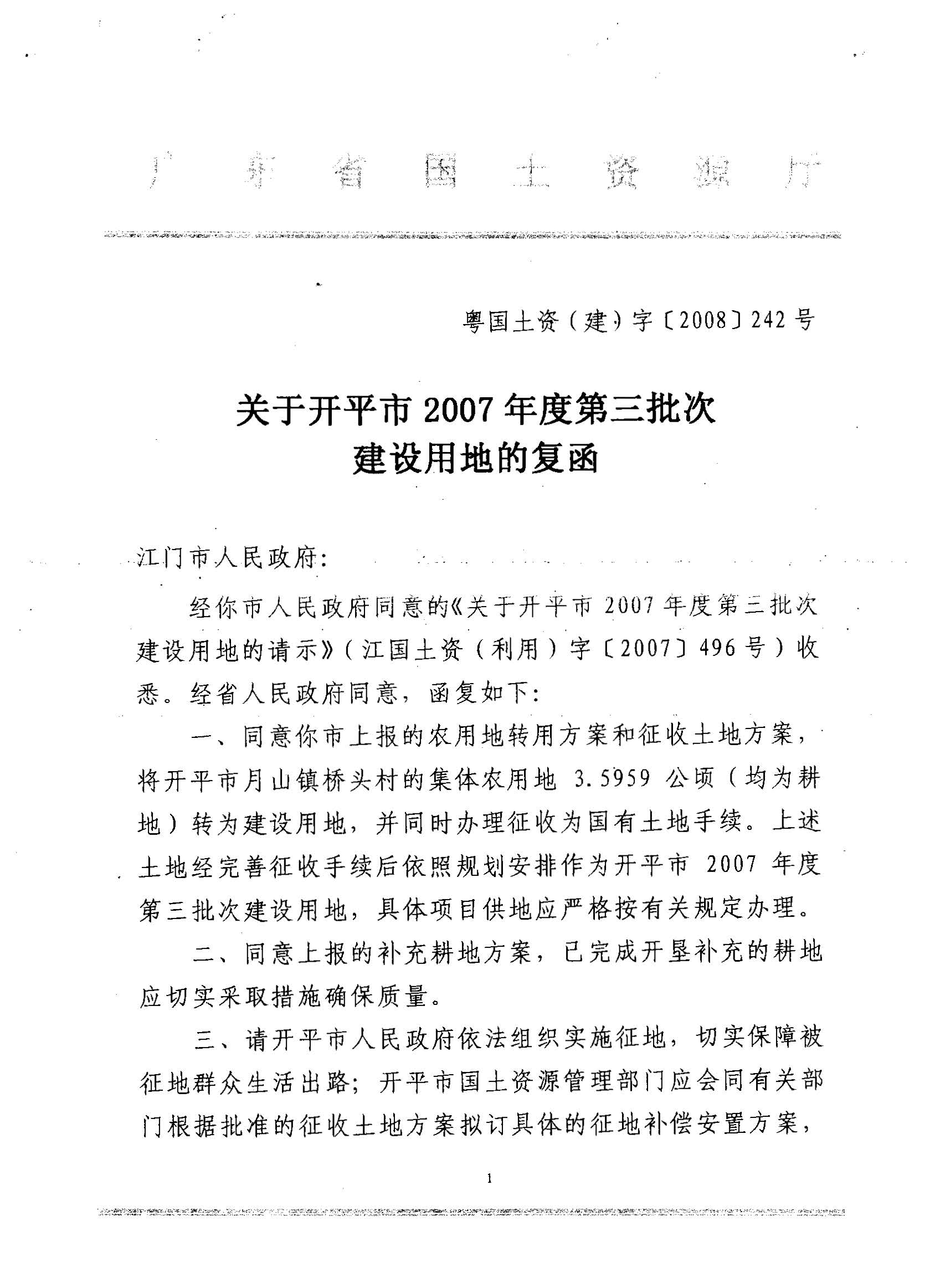 開平市2007年度第三批次建設用地的復函