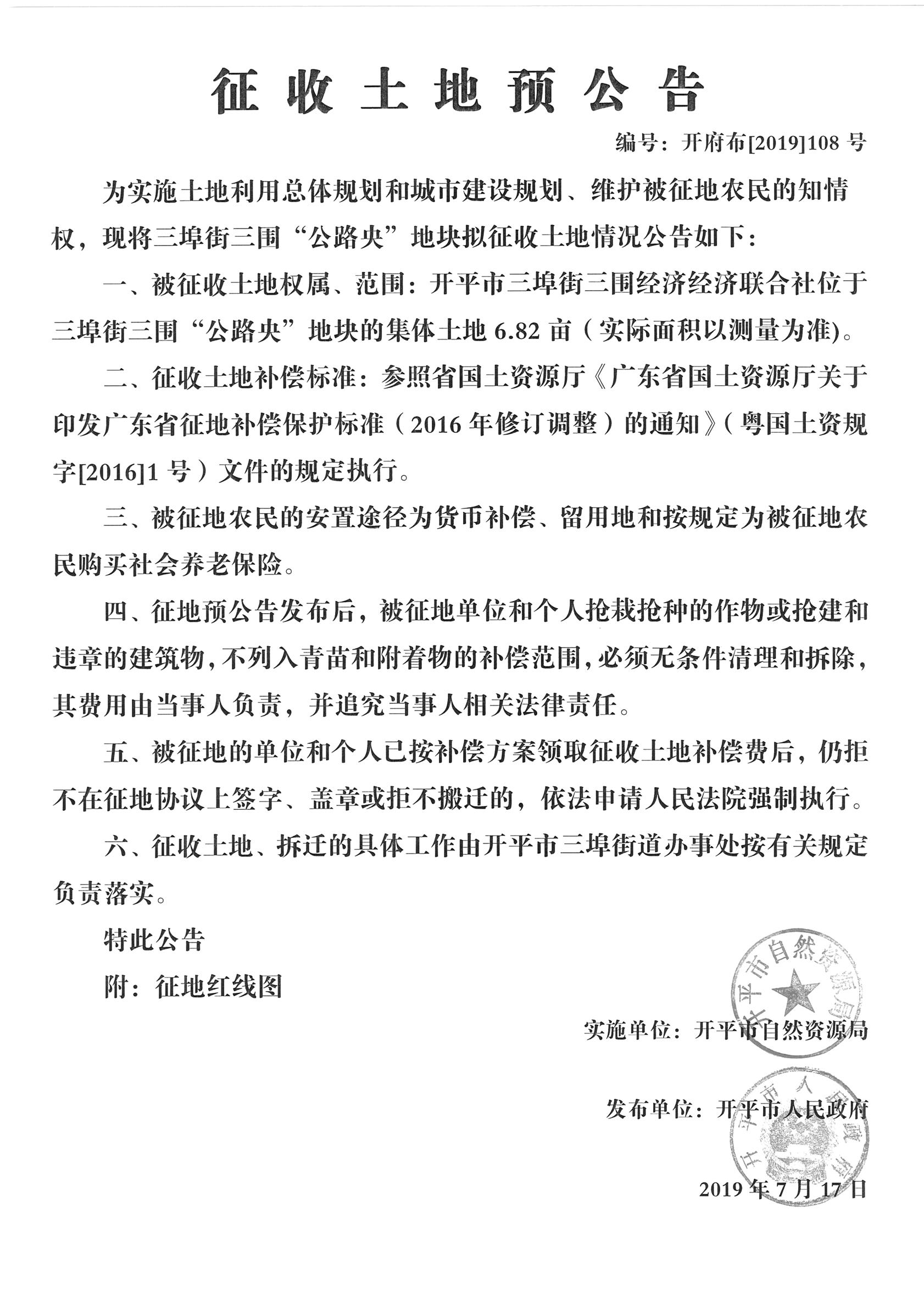 您當前的位置:首頁 > 開平市自然資源局 > 土地管理 > 征地預公告