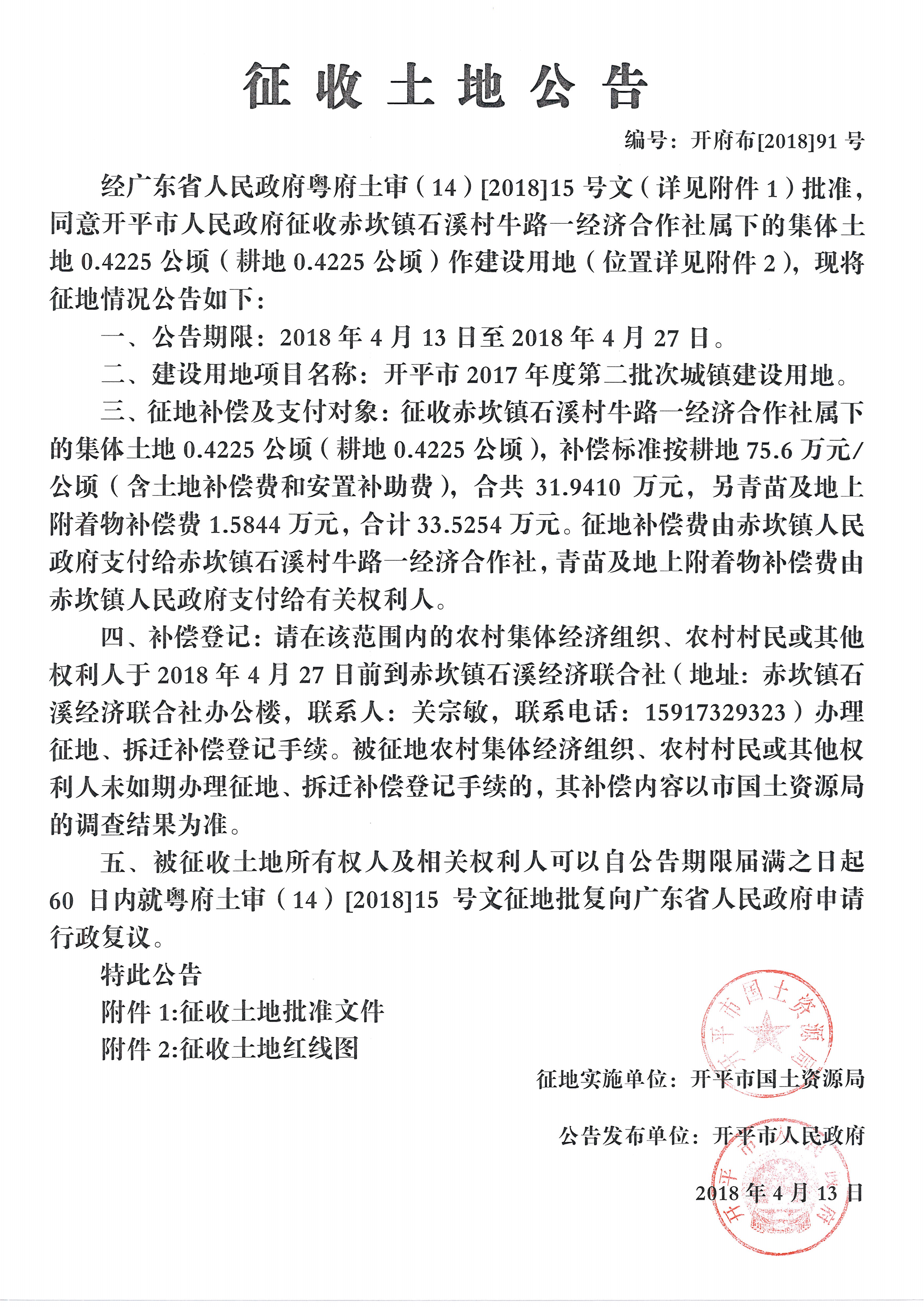 您當前的位置:首頁 > 開平市自然資源局 > 土地管理 > 征收土地公告