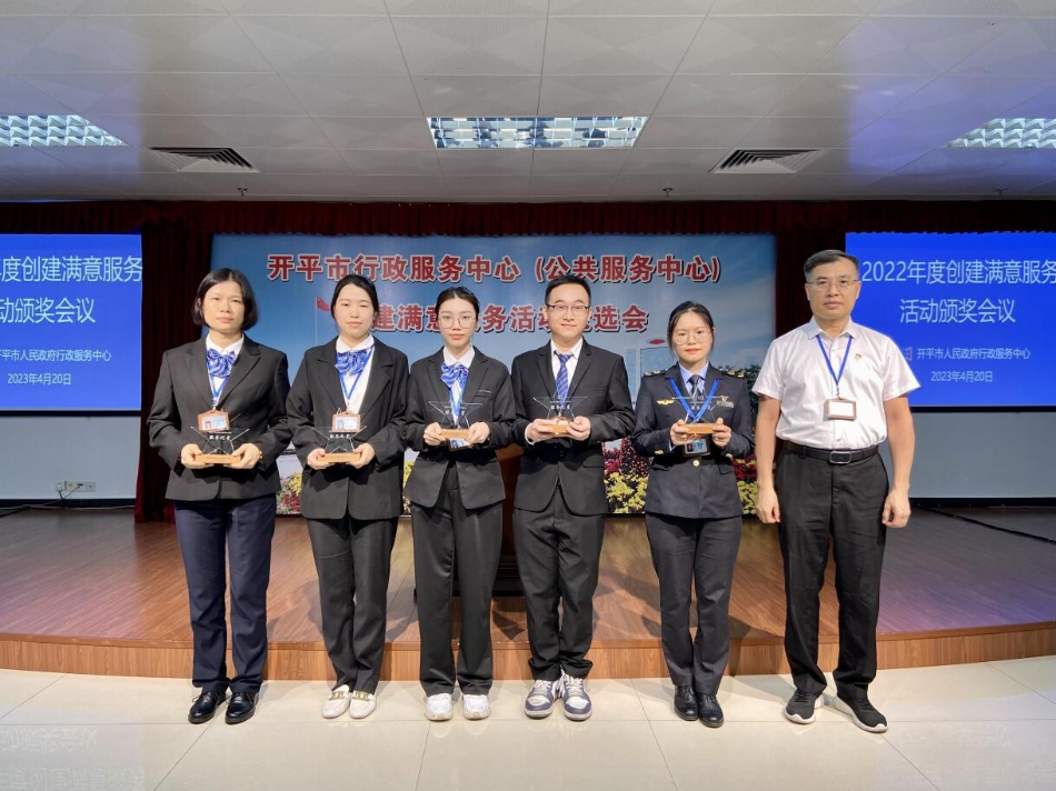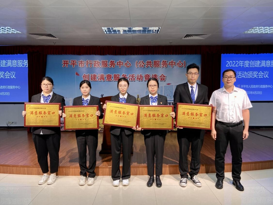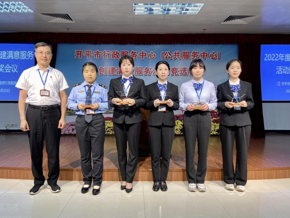 4月20日下午,開平市行政服務(wù)中心召開2022年度創(chuàng)建滿意服務(wù)活動(dòng)表彰大會(huì),市政務(wù)服務(wù)數(shù)據(jù)管理局主要領(lǐng)導(dǎo),行政服務(wù)中心全體職工以及中心服務(wù)窗口,審辦后臺(tái),服務(wù)之星代表參加了此次大會(huì)。 為加強(qiáng)服務(wù)窗口、審辦后臺(tái)、服務(wù)后勤管理,促進(jìn)機(jī)關(guān)作風(fēng)建設(shè),進(jìn)一步提升工作人員的政治素質(zhì)和業(yè)務(wù)能力,強(qiáng)化責(zé)任意識(shí)、服務(wù)意識(shí)、效率意識(shí)和創(chuàng)先爭(zhēng)優(yōu)意識(shí),市行政服務(wù)中心深入開展創(chuàng)建滿意服務(wù)活動(dòng),并評(píng)選出5個(gè)“滿意服務(wù)窗口”、4個(gè)“滿意審辦后臺(tái)”、1個(gè)“滿意服務(wù)后勤”以及10名“服務(wù)之星”。 市政數(shù)局黨組書記、局長(zhǎng)龔偉強(qiáng)同志為5個(gè)“滿意服務(wù)窗口”的獲獎(jiǎng)代表頒發(fā)獎(jiǎng)牌 市政數(shù)局黨組成員、行政服務(wù)中心主任顏劍超同志為4個(gè)“滿意審辦后臺(tái)”獲獎(jiǎng)代表頒發(fā)獎(jiǎng)牌 市政數(shù)局副局長(zhǎng)武勝利同志為“滿意服務(wù)后勤”代表頒發(fā)獎(jiǎng)牌 市行政服務(wù)中心副主任周建寧同志為10名“服務(wù)之星”獲獎(jiǎng)?wù)哳C發(fā)獎(jiǎng)杯 通過(guò)此次評(píng)選活動(dòng),全體職工將以先進(jìn)為榜樣,堅(jiān)持以習(xí)近平新時(shí)代中國(guó)特色社會(huì)主義思想為指導(dǎo),不忘初心,牢記使命,凝心聚力、接續(xù)奮斗,爭(zhēng)創(chuàng)廣東省行政服務(wù)標(biāo)桿大廳,在全面建設(shè)社會(huì)主義現(xiàn)代化國(guó)家新征程中展現(xiàn)我們政務(wù)服務(wù)的新?lián)?dāng)、新作為。