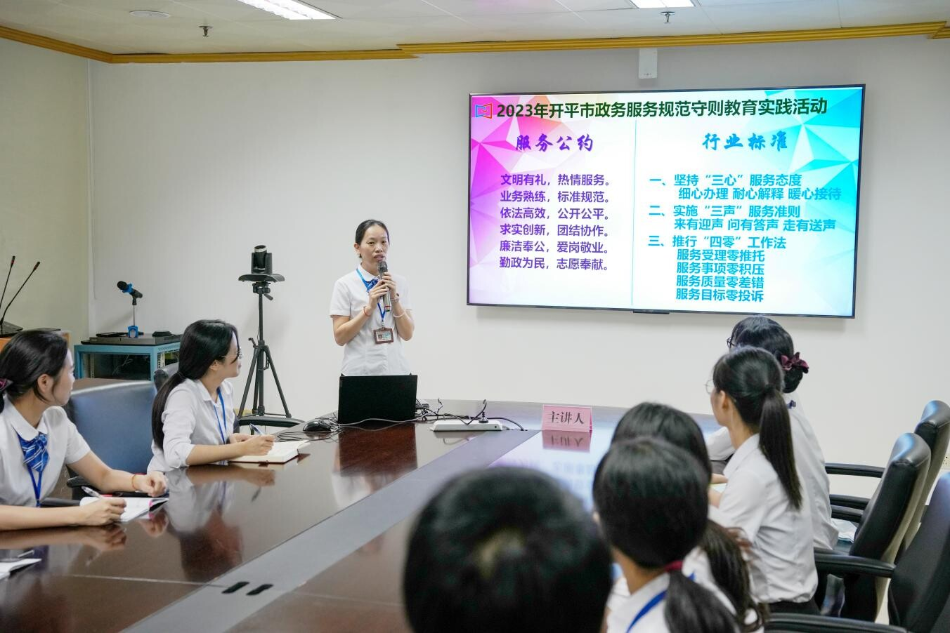 “文明有禮,熱情服務;業務熟練,標準規范;依法高效,公開公平……”一陣陣嘹亮的聲音從活動現場傳來,這是政務人熟知的服務公約和行業標準。8月23日下午,為進一步提高窗口工作人員服務意識,打造一流服務的標桿大廳,市政務服務數據管理局組織開展政務服務行業規范培訓活動。