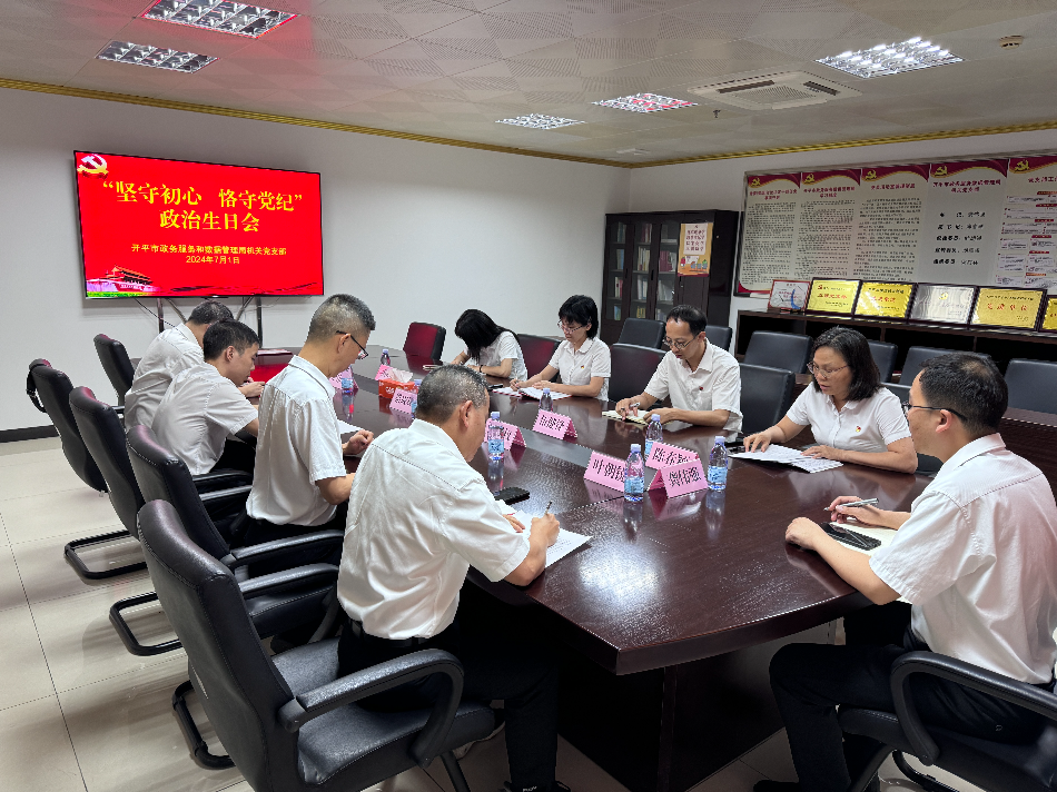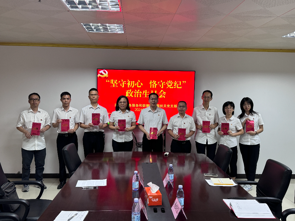 為推動黨紀學習教育走深走實,以過好“政治生日”方式強化黨員黨性修養,把黨紀學習教育融入日常、抓在經常,7月1日下午,市政數局機關黨支部召開“堅守初心恪守黨紀”為主題的黨員政治生日會。 活動中,首先由紀律委員領學《中國共產黨紀律處分條例》,通過重點解析關于廉潔紀律和群眾紀律的條款,讓黨員們深刻理解廉潔自律的重要性,以及群眾路線的核心要義,明確作為一名黨員應當遵循的行為準則。 緊接著,組織黨員集中觀看紅色故事《扎根》,引導全體黨員以優秀干部為榜樣,更加積極地投身到為人民服務的事業中去。 在莊嚴的氣氛中,全體黨員面向黨旗重溫入黨誓詞,以鏗鏘有力、擲地有聲的誓言表達了對黨的無限忠誠以及為人民事業不懈奮斗的堅定決心。 最后,黨支部書記為每一名黨員頒發政治生日賀卡,向黨員同志送上“政治生日”祝福,黨員代表分享自己的入黨初心和成長歷程。通過交流分享,進一步增強了黨員的歸屬感、榮譽感和責任感。